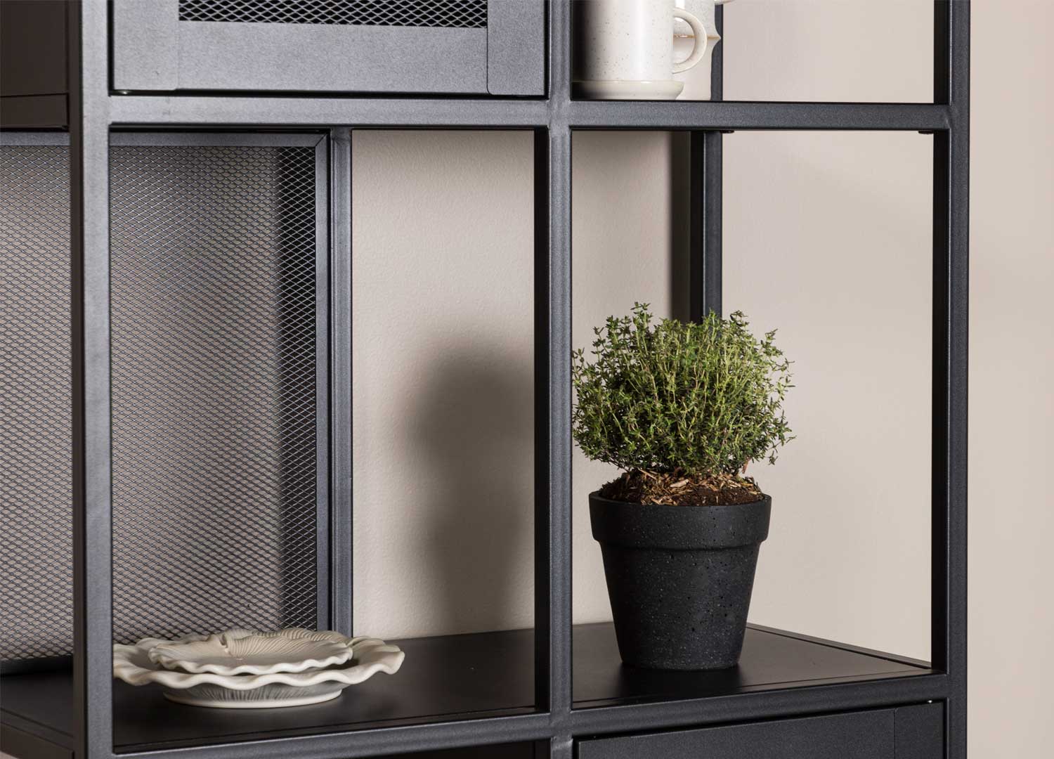 Cette bibliothèque industrielle en métal noir est un élément de décoration et de rangement polyvalent, doté de 3 compartiments fermés et de poignées dorées raffinées. Son design industriel, allié à la sobriété du métal noir, en fait un meuble élégant et moderne, idéal pour les intérieurs contemporains. Les compartiments fermés offrent un espace de rangement organisé pour les livres, les objets décoratifs et autres effets personnels, tandis que les poignées dorées apportent une touche d'opulence et de sophistication.