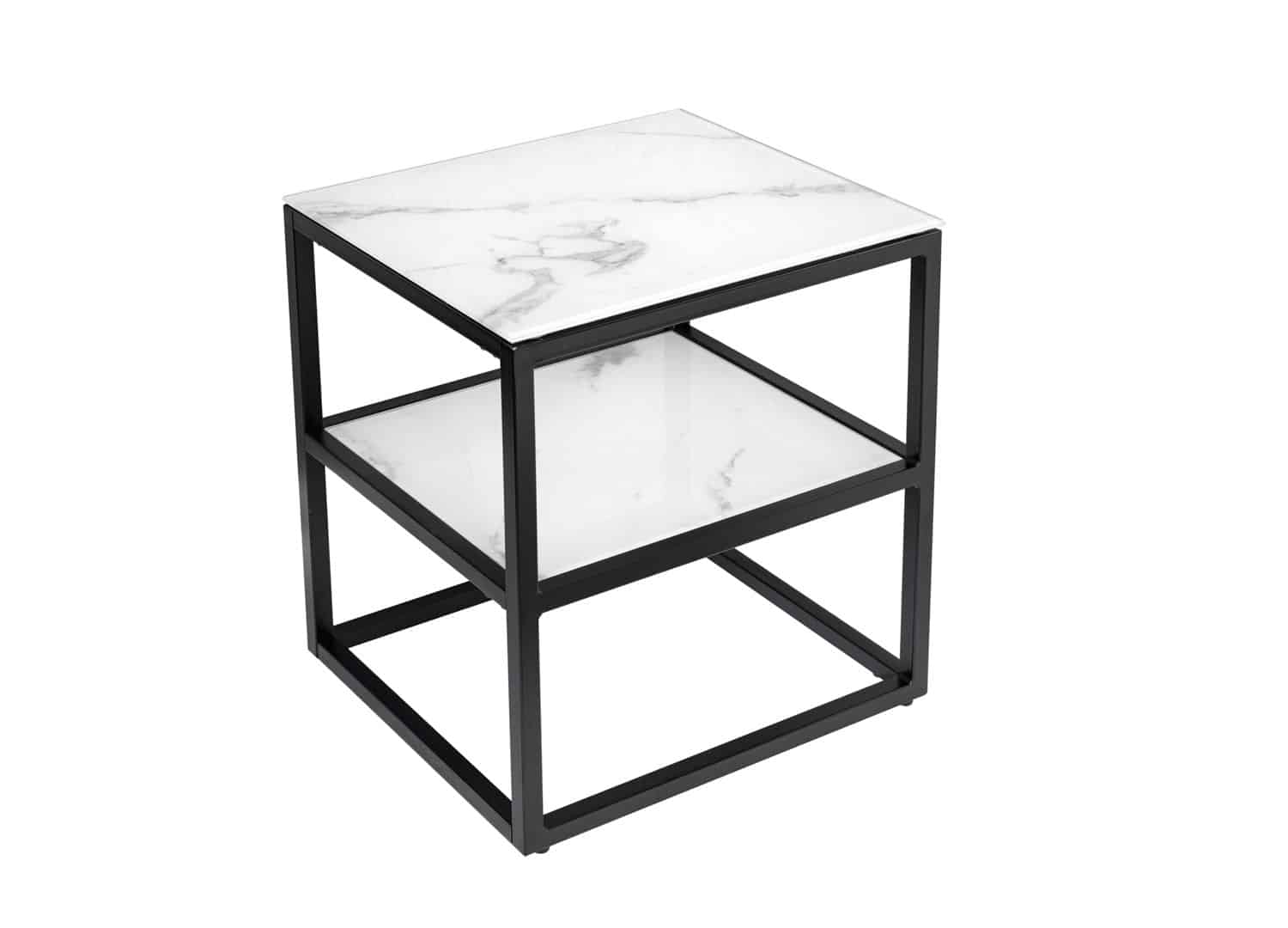 Voici le bout de canapé, l'ajout parfait à votre salon ou à votre chambre. Cette table d'appoint élégante est fabriquée en métal noir poudré et comporte un plateau en verre aspect marbre balnc. Elle présente un style de design moderne qui ajoutera une touche d'élégance à n'importe quelle pièce. Que vous lisiez un livre ou savouriez une tasse de thé, ce bout de canapé est l'endroit idéal pour poser votre tasse.