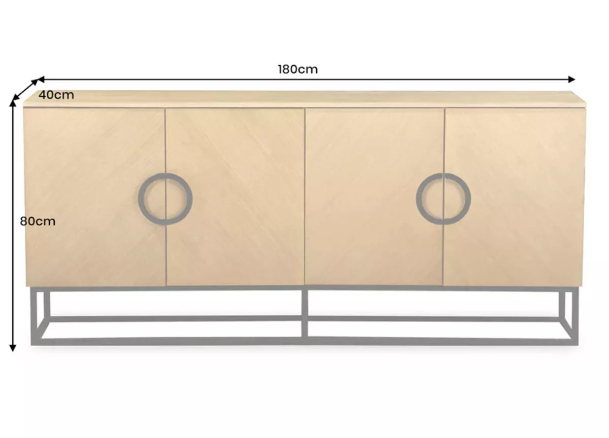 Sous ses allures sages, ce buffet de 180 cm cache un vrai tempérament. Son placage chêne clair capte la lumière, ses lignes se tendent, puis s’adoucissent, et son piétement en métal noir le fait presque léviter. Derrière ses portes aux grandes poignées graphiques, un monde bien rangé : assiettes, papiers et secrets du séjour disparaissent avec élégance. À mi-chemin entre nature et design, il impose sa présence sans bruit — juste une note de calme et de caractère au cœur du séjour.