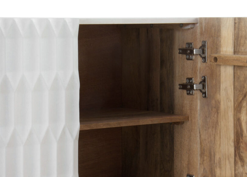 Un buffet se choisit aussi en fonction de l’espace disponible et des besoins de rangement. Comptez entre 100 et 180 cm de largeur pour un buffet standard. Vérifiez le nombre de portes, de tiroirs ou d’étagères en fonction de ce que vous souhaitez y stocker. Nos meubles en stock sont disponibles en plusieurs configurations : 2 ou 3 portes, 3 à 5 tiroirs, avec ou sans niches, selon vos besoins.