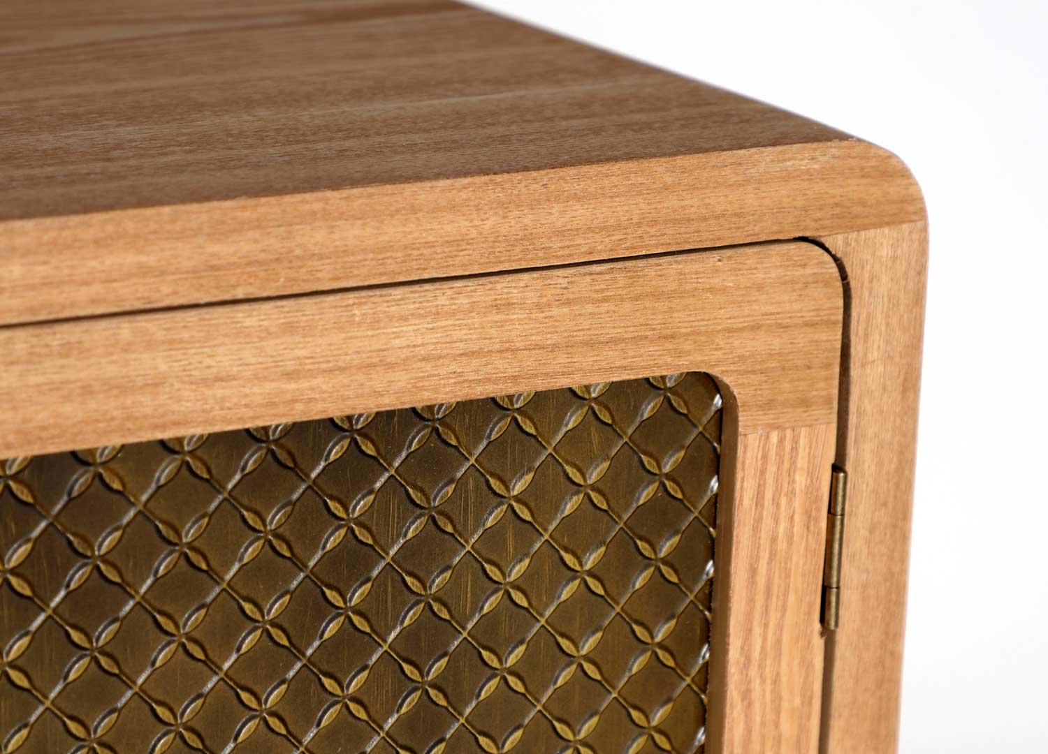 Fabriqué à partir de bois de pin massif, ce buffet promet non seulement une grande durabilité et résistance au fil du temps, mais également un aspect chaleureux et accueillant, propre au bois naturel. Les façades de ce buffet sont ornées d'un décor treillis géométrique en aluminium authentique qui apporte sa touche d'originalité et de design à l'ensemble. Long de 162cm ,ce buffet 4 portes en bois de pin est parfait pour le rangement de votre vaisselles ou vos papiers.