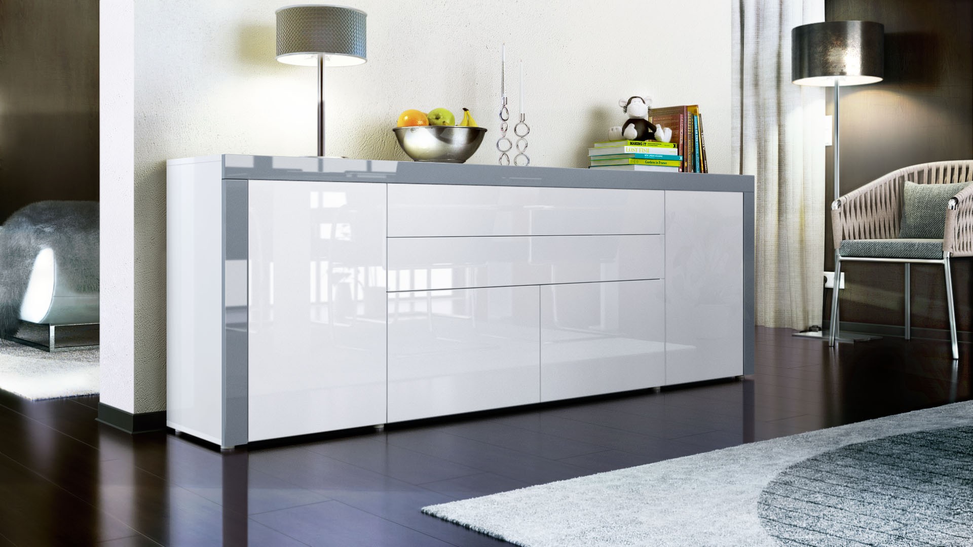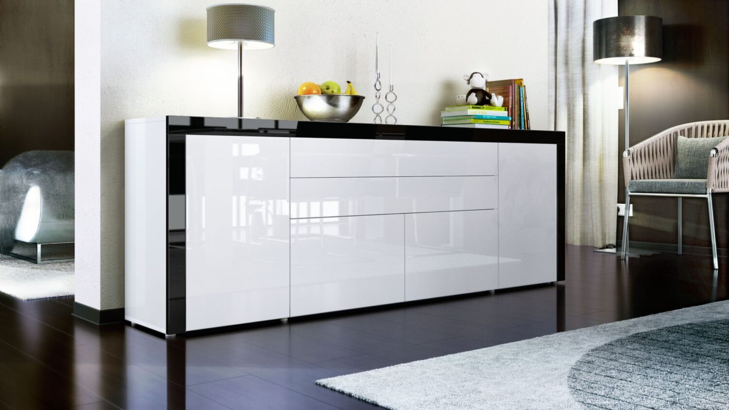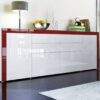 Grâce à ses beaux volumes de rangement, ce buffet bahut long laqué de 200 cm pourra accueillir avec aisance votre vaisselle ou tout autre objet. Ses bandeaux contrastés créerons une ambiance design et épurée dans votre séjour avec ce mobilier moderne. Ce beau buffet se compose de 4 portes dont 2 battantes vers le bas et de 2 grands tiroirs pratiques pour le rangement des accessoires du quotidien.