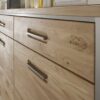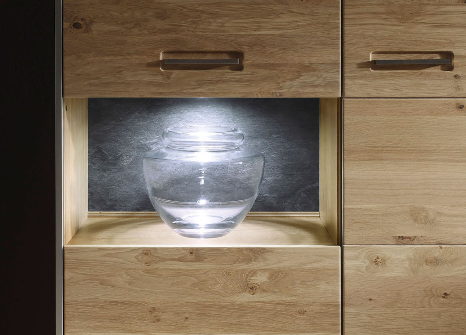 Un beau bahut haut en bois de chêne massif bianco, un meuble haut de gamme disposant de façades au grain expressif. Ce buffet haut dispose d'un encadrement en acier inoxydable brossé qui lui confère un style contemporain. Avec ses nombreux rangements, 3 portes, 2 tiroirs et 1 niche, ce buffet design accueillera facilement toute votre vaisselle et autres objets.