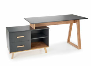 Un nouveau look pour votre lieu de travail arrive certainement au bon moment, n'est-ce pas ? Notre bureau au design asymétrique combine un design industriel intemporel avec une grande surface de travail qui peut accueillir confortablement tous vos documents, le PC et une lampe de bureau. Le conteneur intégré, qui sert de pilier à la table, offre un espace de rangement supplémentaire. Vous y trouverez trois tiroirs spacieux, dont les façades sont également conçues de manière asymétrique.