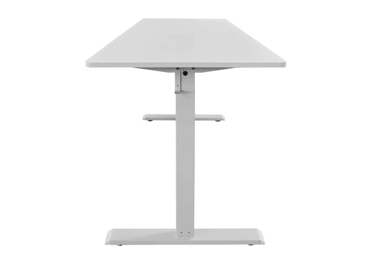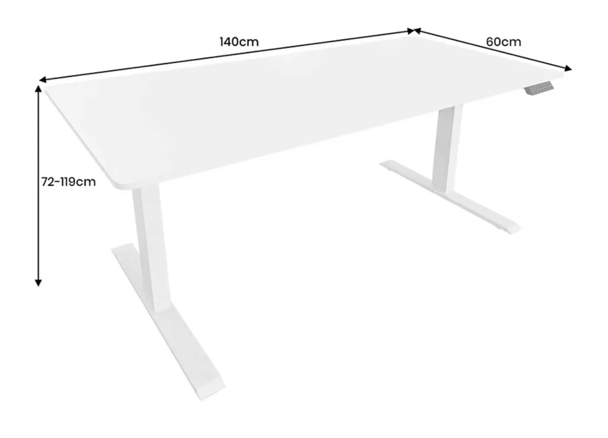 Ce bureau relevable de 140 cm joue la carte de la sobriété élégante. Son plateau blanc, à la surface lisse et profonde, capte la lumière avec discrétion et confère à ton espace de travail une allure résolument contemporaine. Son piétement en métal blanc, robuste et minimaliste, cache un mécanisme relevable fluide qui te permet de passer d’une position assise à debout en un geste. Ajustable de 76 à 119 cm, il s’adapte à ton rythme, à tes envies, à ta journée.