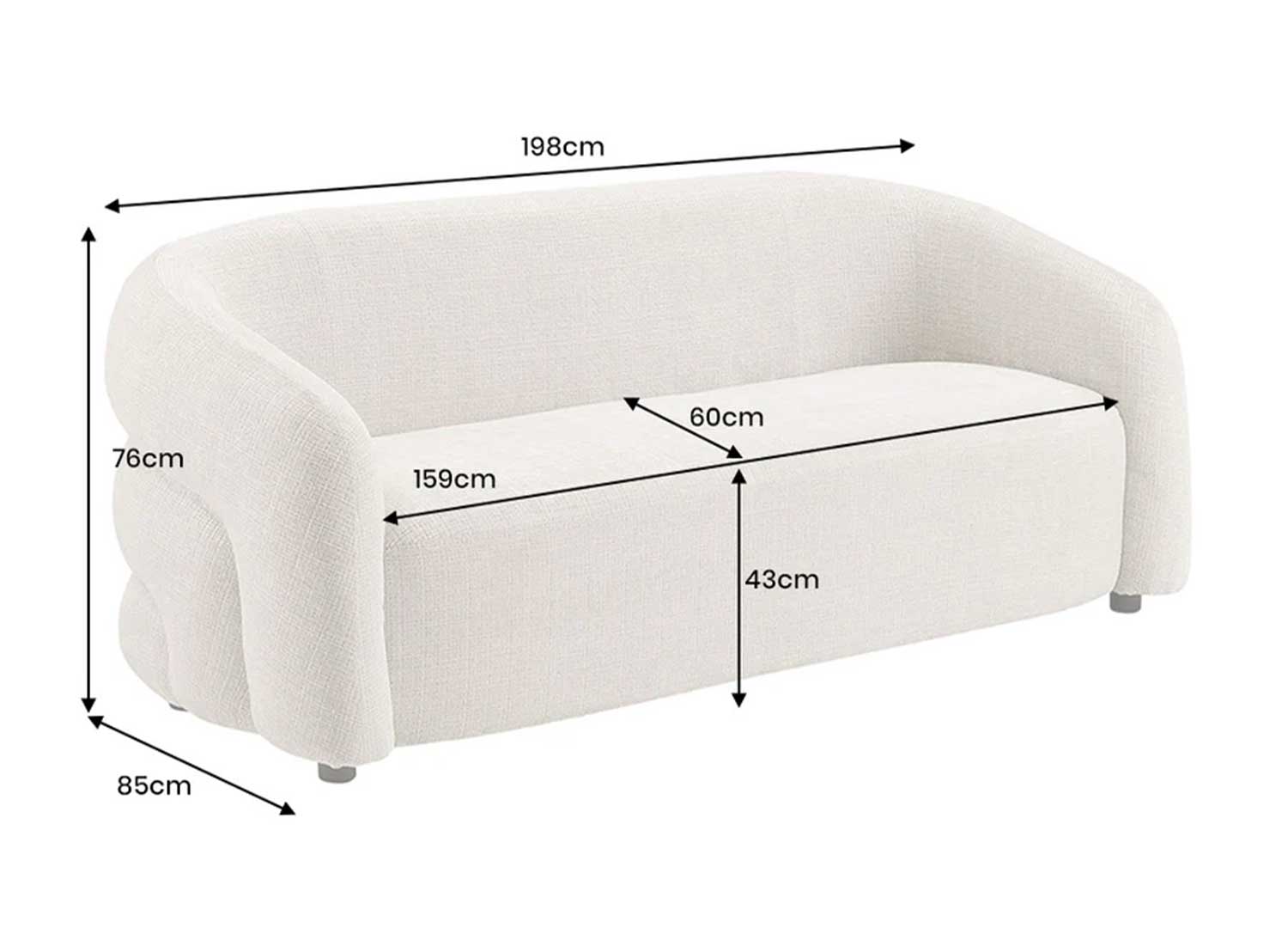 Canapé 3 places 198 cm en tissu chenille gris Courba