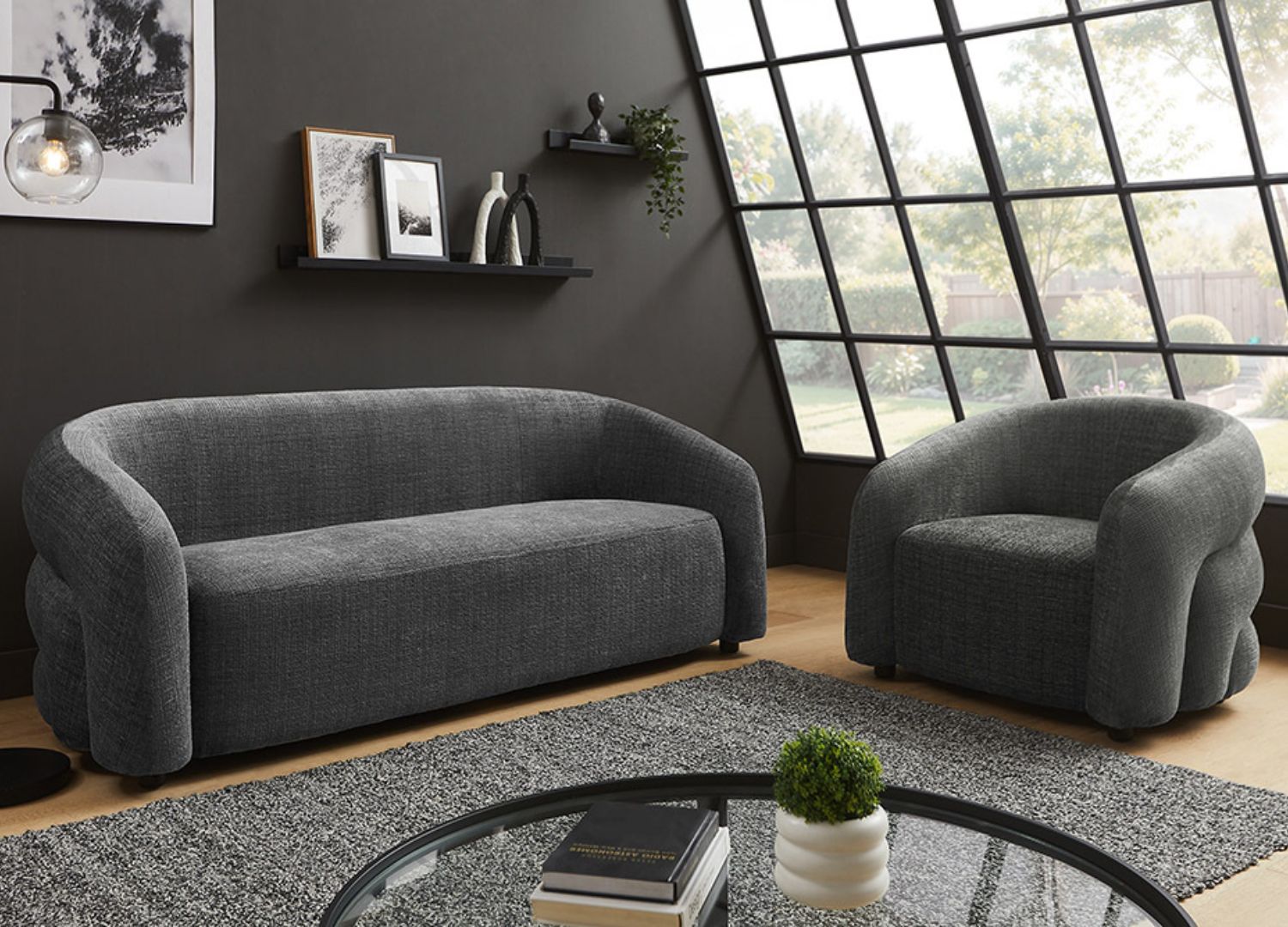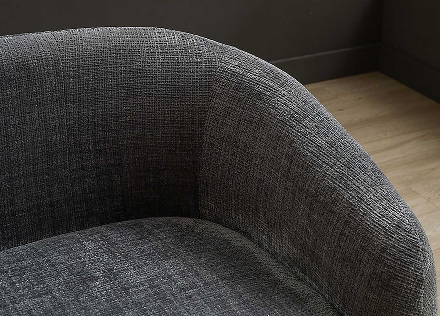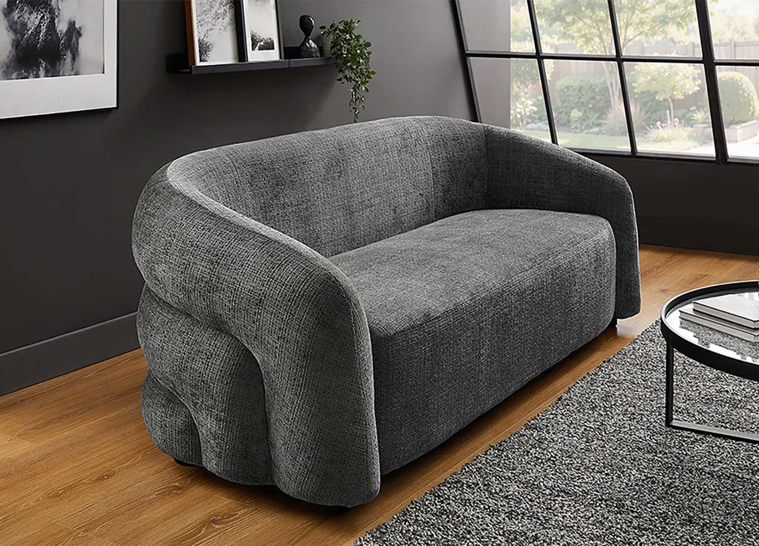 Avec son tissu chenille gris au toucher doux et son design tout en courbes, le canapé Courba apporte immédiatement une sensation de confort et de modernité à la pièce. Sa silhouette généreuse, soulignée par des formes arrondies, lui donne une présence douce et contemporaine. Véritable invitation à la détente, il conjugue allure soignée et esprit cocon dans un style intemporel.