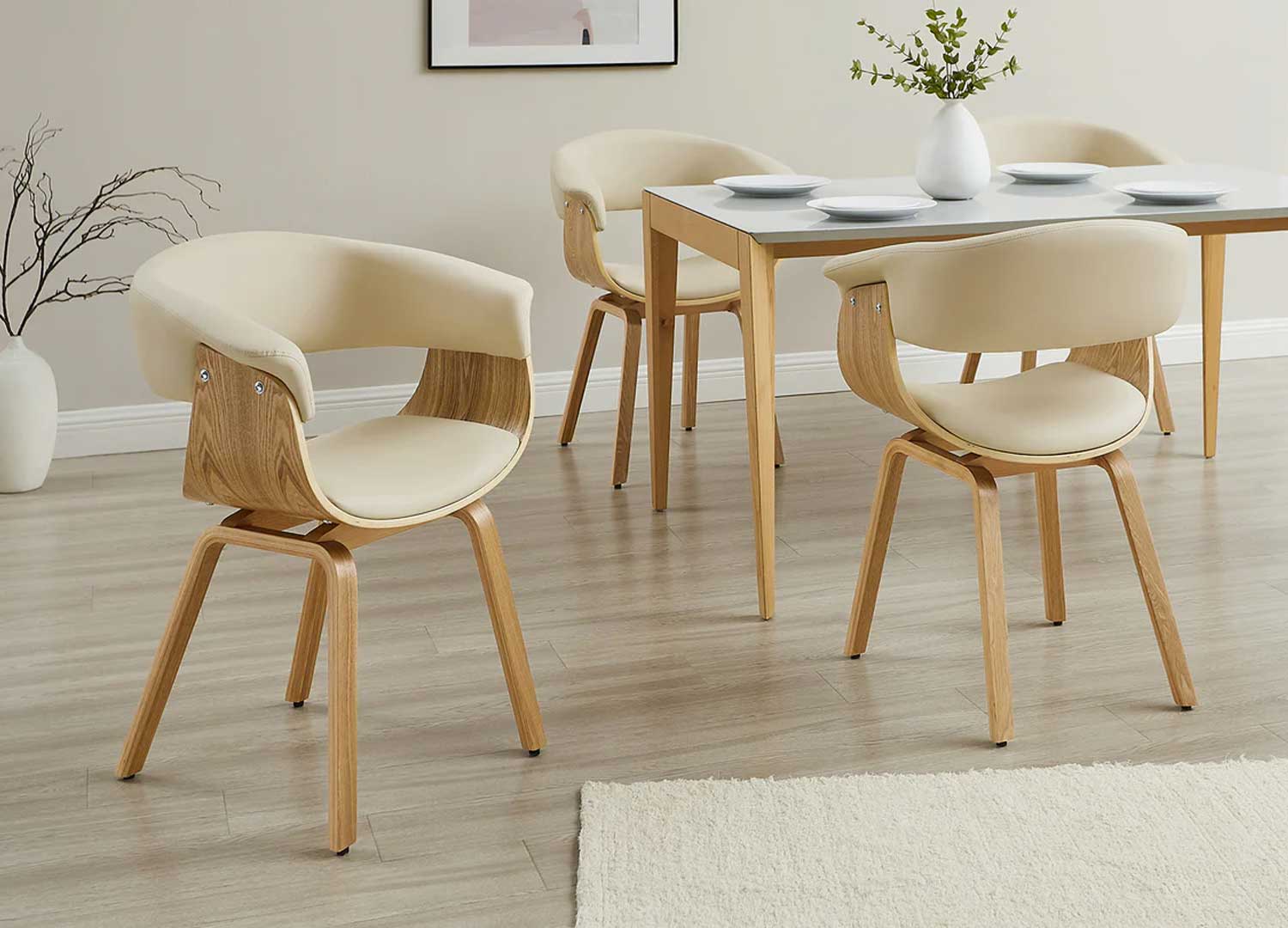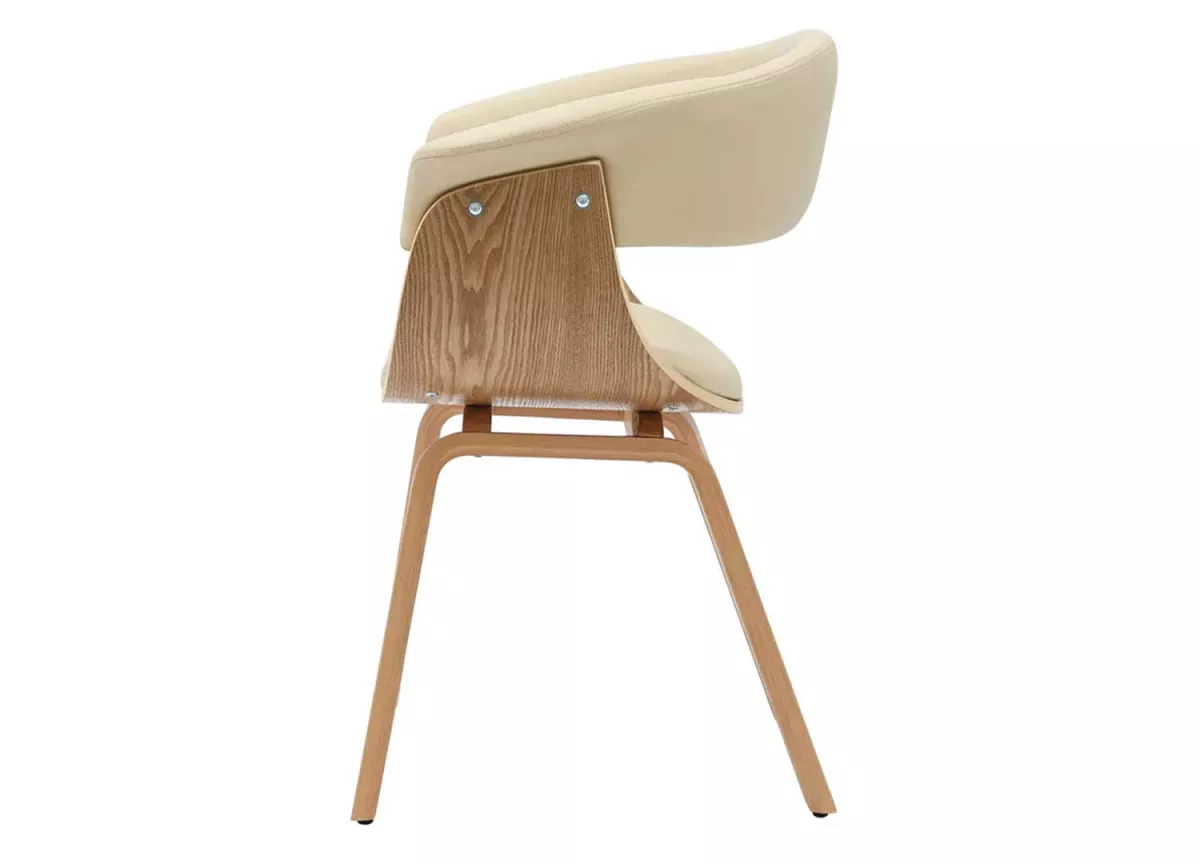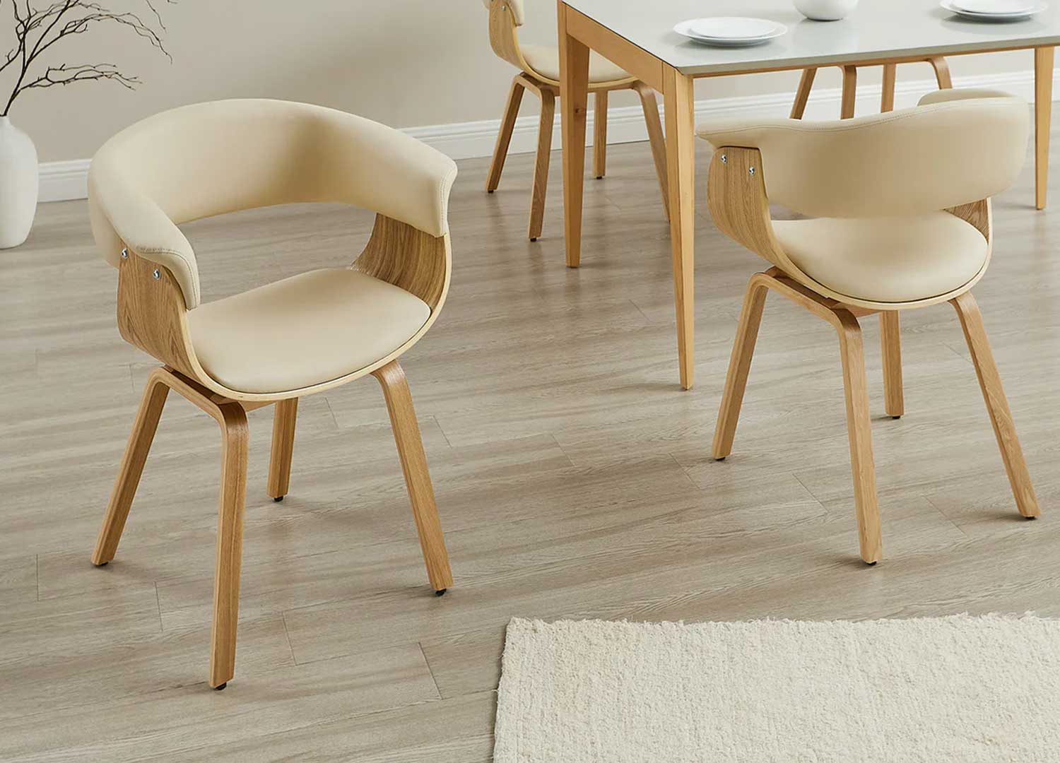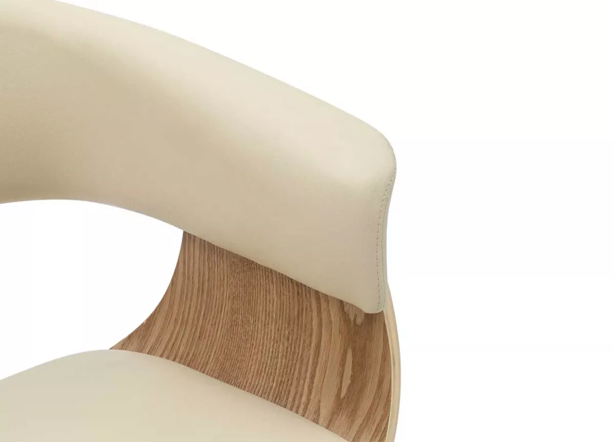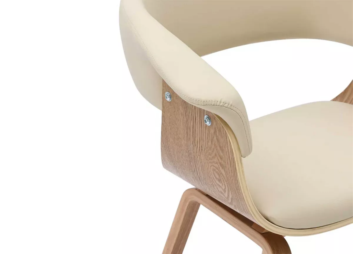 Élégante et confortable, cette chaise de salle à manger associe la chaleur du plaquage bois de chêne à la douceur du simili cuir beige. Son dossier arrondi et enveloppant vous offre un maintien agréable, idéal pour partager de longs repas en toute convivialité. Avec ses lignes modernes et ses finitions soignées, elle s’intègre aussi bien dans un intérieur contemporain que dans une ambiance scandinave.