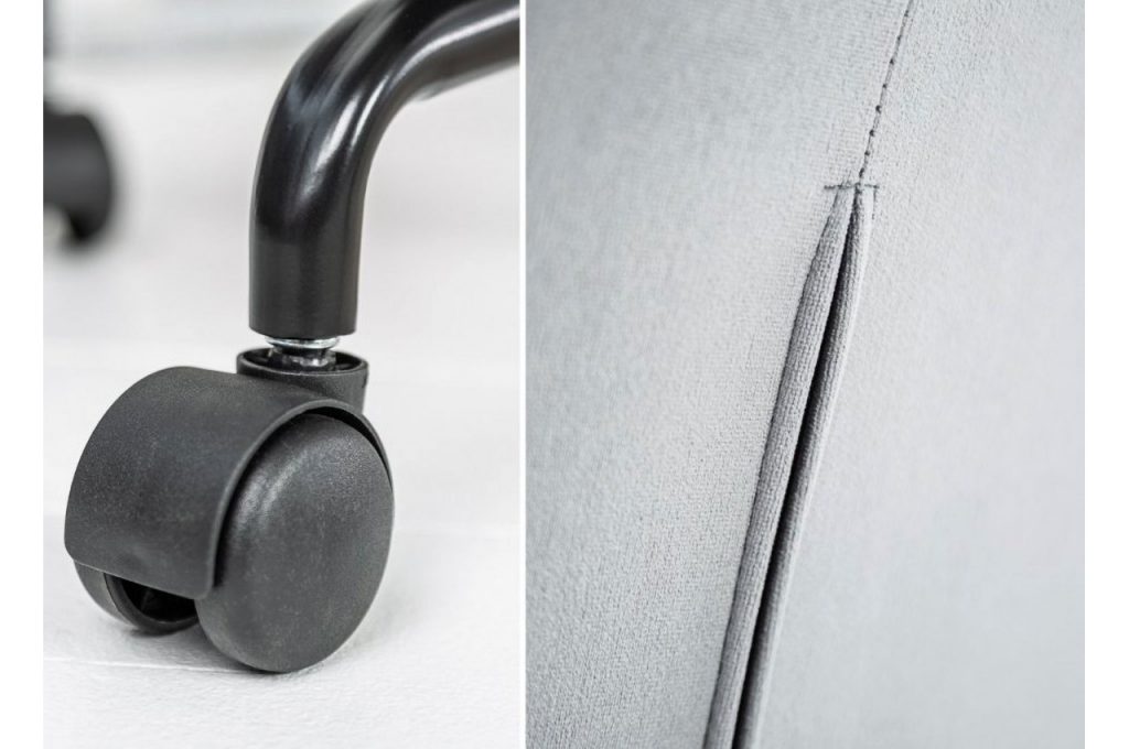 Un coin cosy dans votre intérieur que vous souhaitez aménager ? Pourquoi pas agencer un coin de travail avec un bureau ainsi que cette chaise en velours au coloris design pour un confort assuré une fois installé dessus. Une assise moelleuse sur un pieds pivotant à roulettes accompagne cette chaise. Une chaise de bureau cosy en velours gris matelassé, parfaite pour un intérieur coloré et lumineux. Elle pourra se placer aussi bien autour d'une table de salle à manger que dans un bureau.