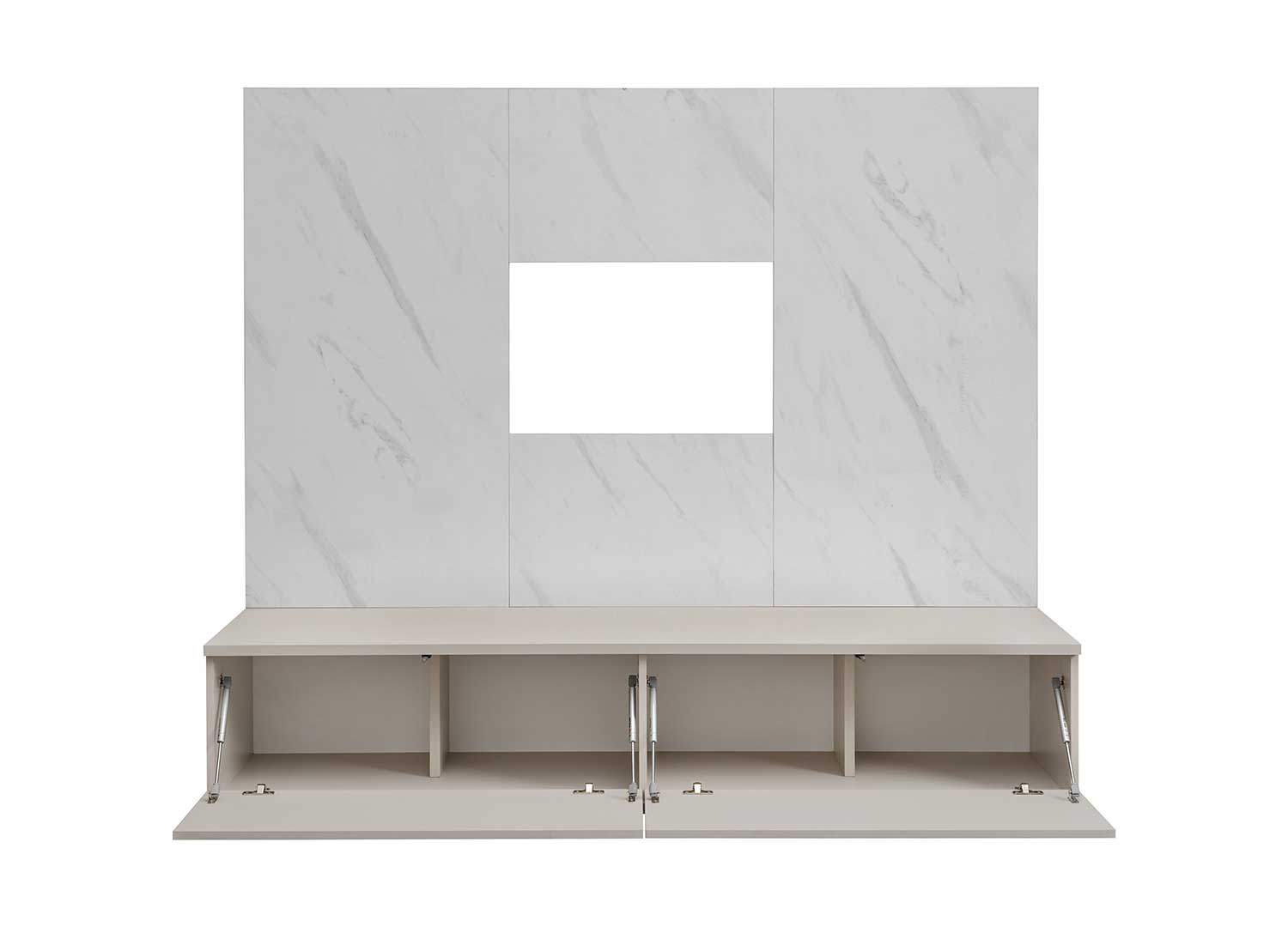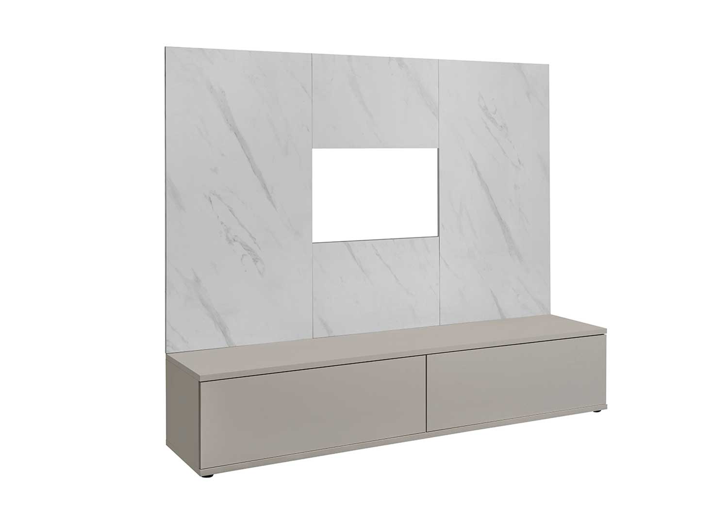 Ensemble TV design avec panneau TV aspect marbre blanc 180 cm