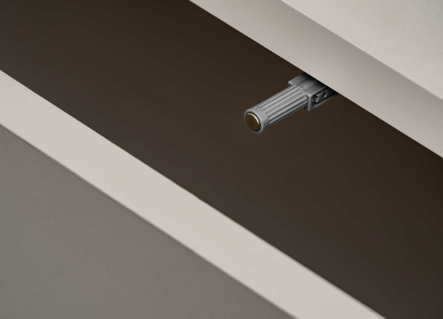 Côté pratique, le meuble TV est équipé de deux portes battantes vers le bas. Derrière chacune d’elles se trouvent deux compartiments, parfaits pour le rangement des accessoires de salon.