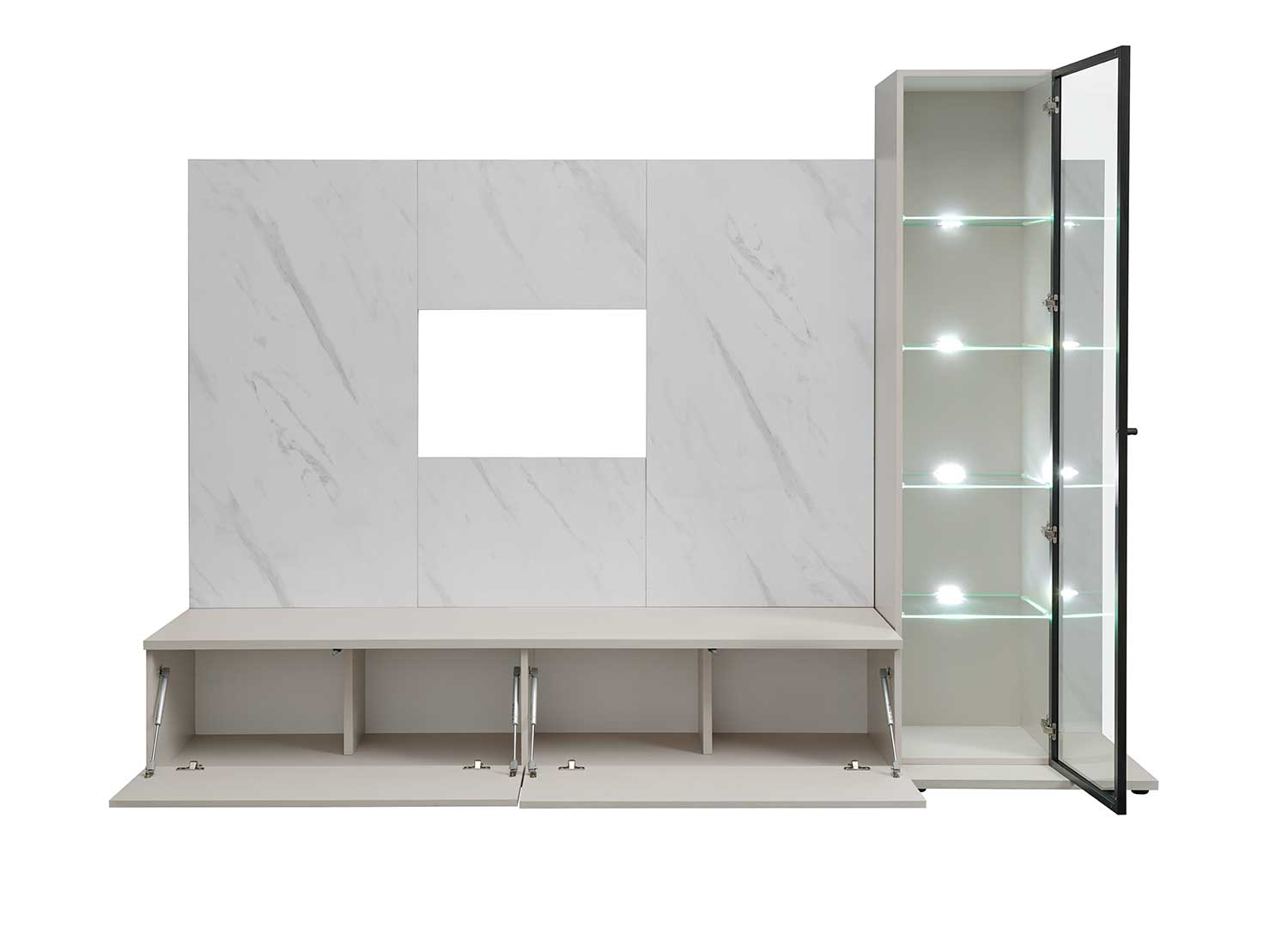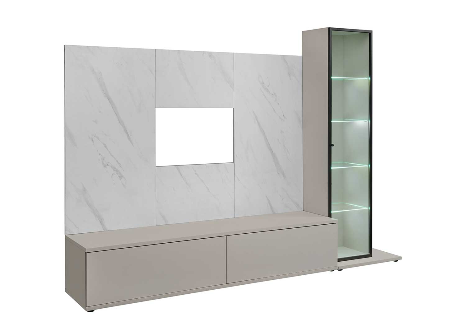Ensemble TV moderne avec vitrine en verre et LED 240 cm