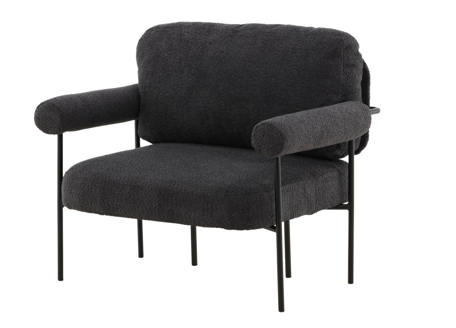 Ce fauteuil design en tissu bouclette gris foncé est un véritable atout pour votre intérieur grâce à son esthétique raffinée et moderne. Ses accoudoirs arrondis offrent un confort optimal, tandis que sa structure en métal noir confère une touche d'élégance et de solidité. Ce fauteuil séduit par sa texture douce et son allure contemporaine, s'intégrant parfaitement dans tout type de décoration. Il allie ainsi fonctionnalité et style, devenant un élément clé pour sublimer votre espace de vie.