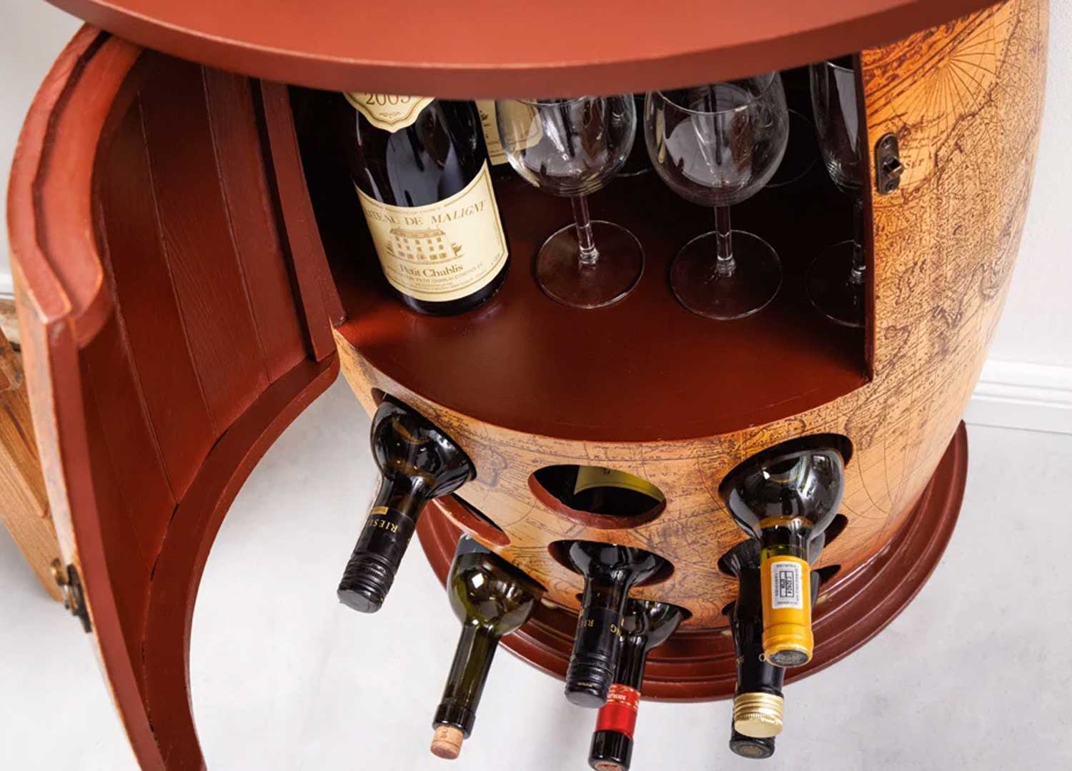 Fût range bouteille en bois de pin décor carte du monde