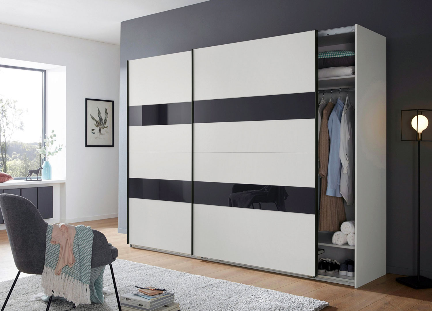 Cette grande armoire pourra accueillir tous vos vêtements grâce à ses grands rangements. Cette armoire design de 2 portes coulissantes dispose de 3 penderies pour suspendre les vestes et chemises et d'espaces lingère pour le linge de maison. Avec ses bandes décoratives en verre gris en façade, cette grande armoire dressing ajoutera un design moderne dans votre chambre à coucher.