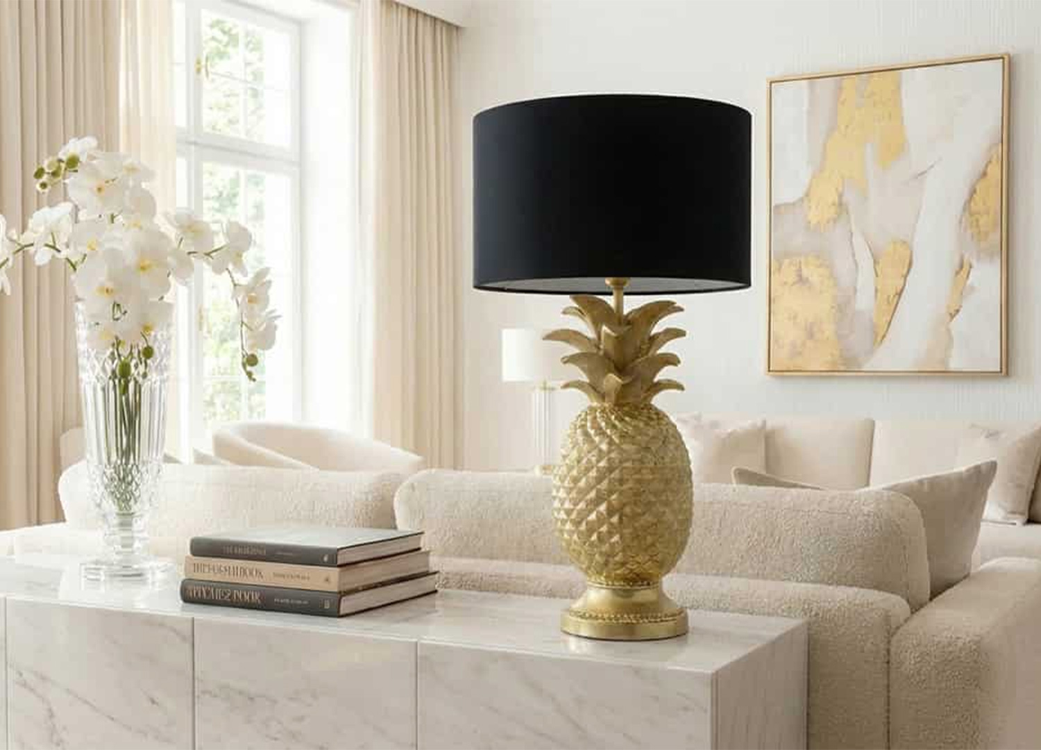 Lampe ananas dorée avec abat-jour noir Exotica