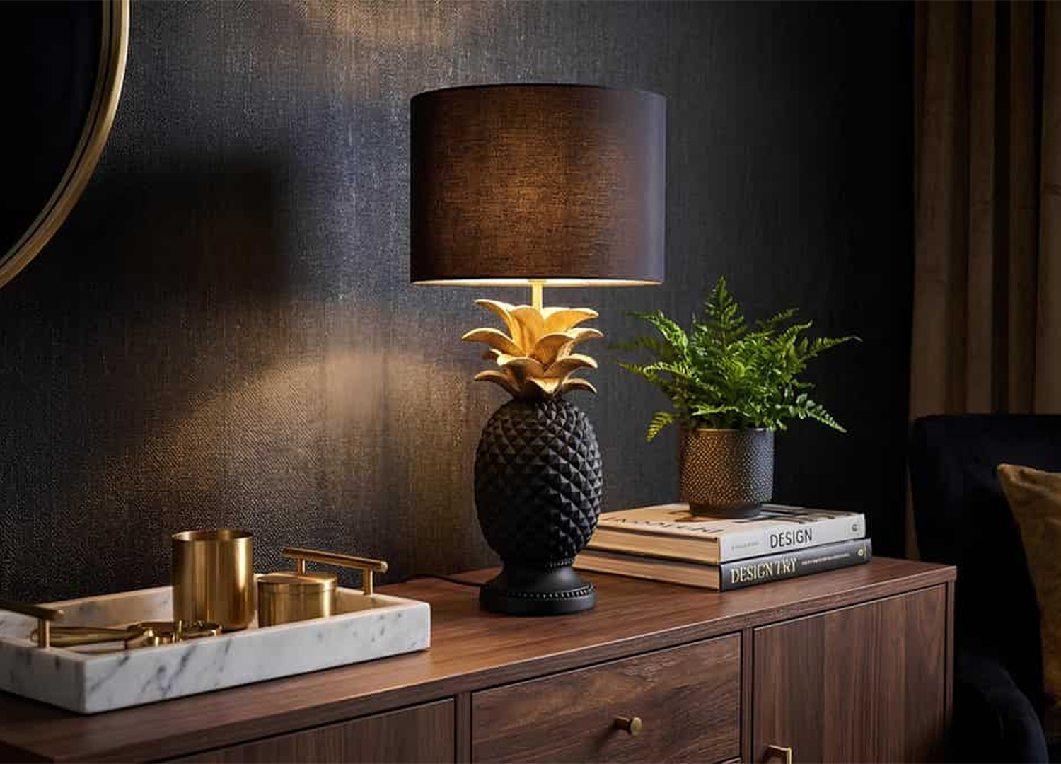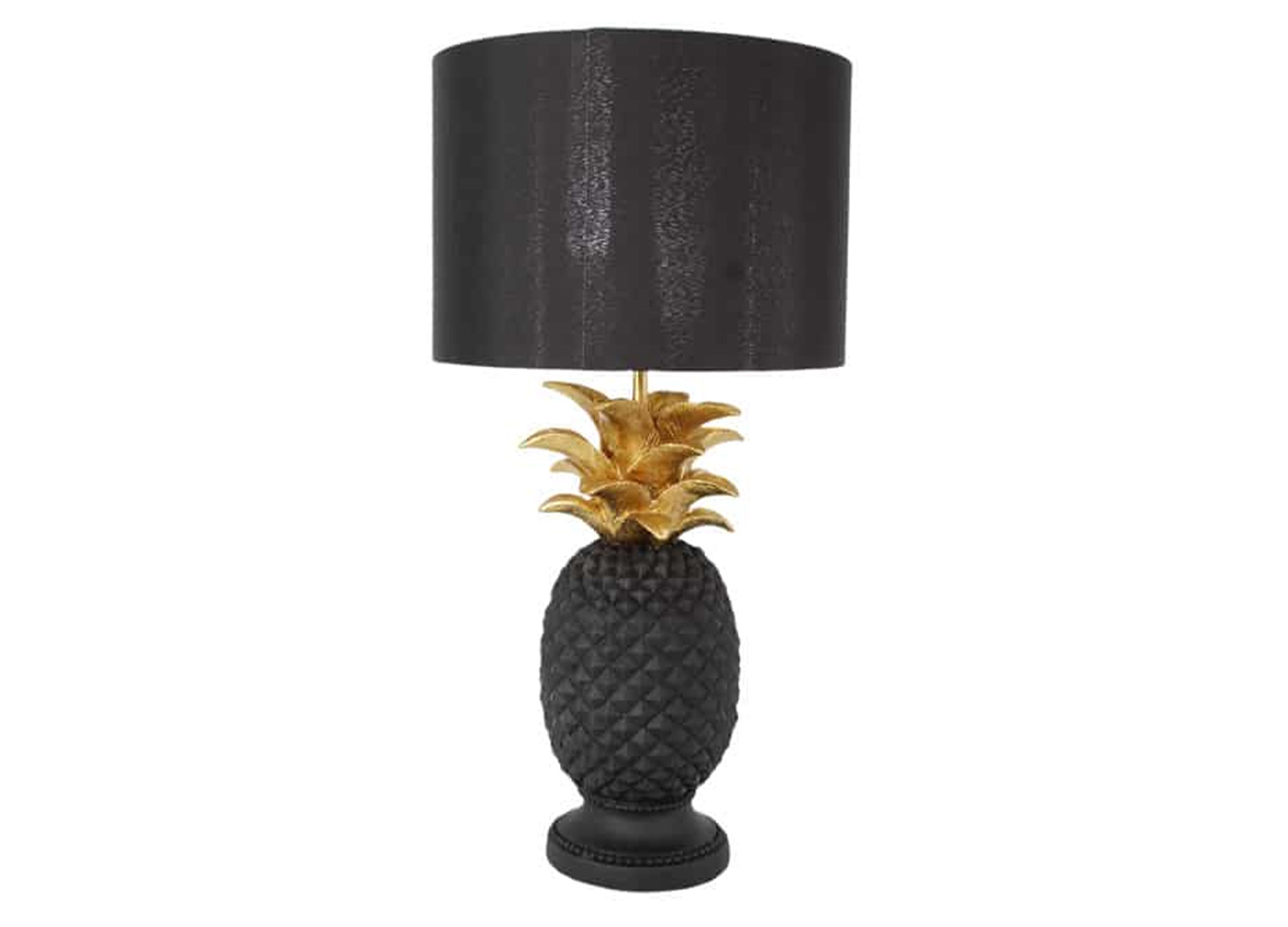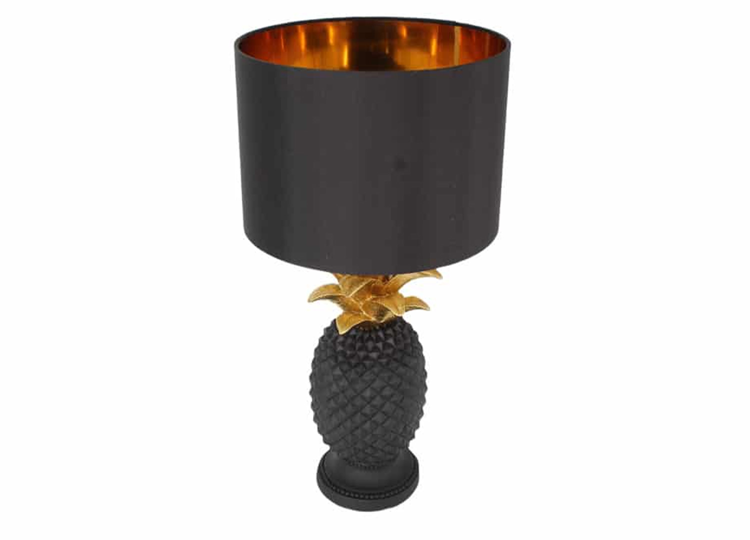 Lampe ananas noire et dorée avec abat-jour noir Exotica