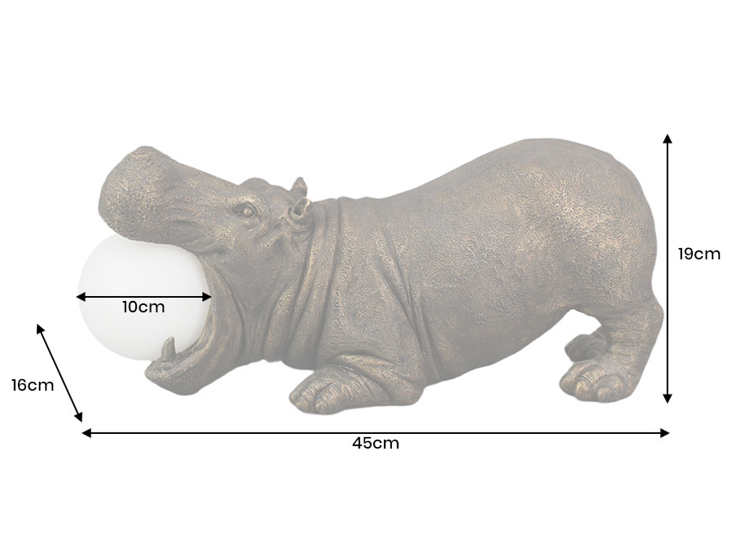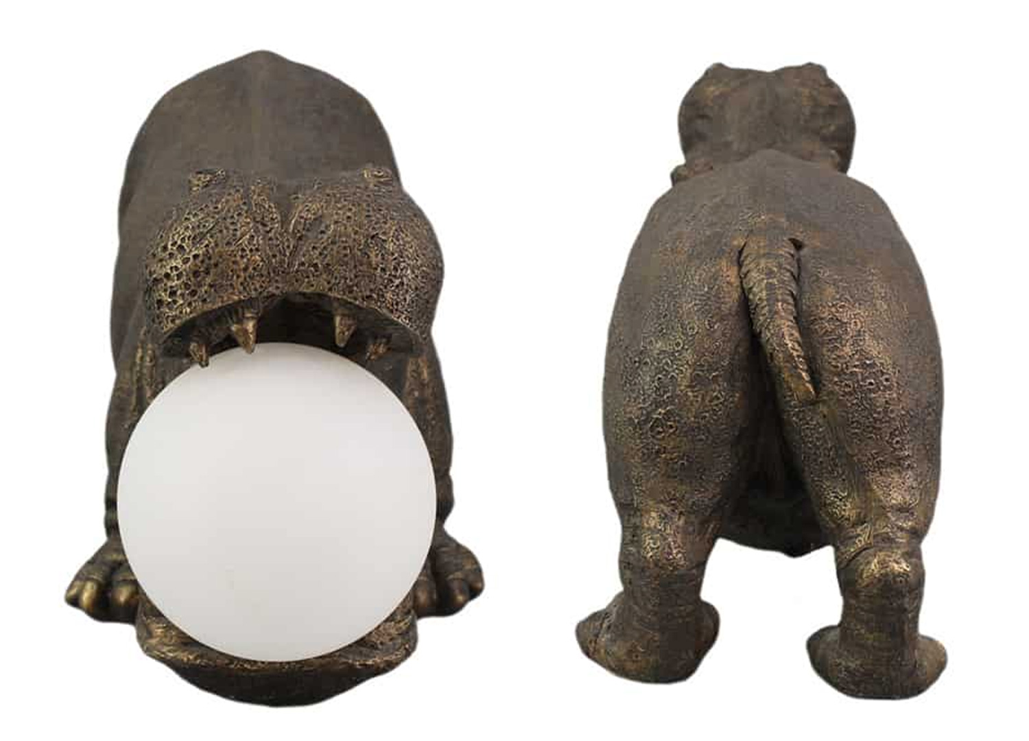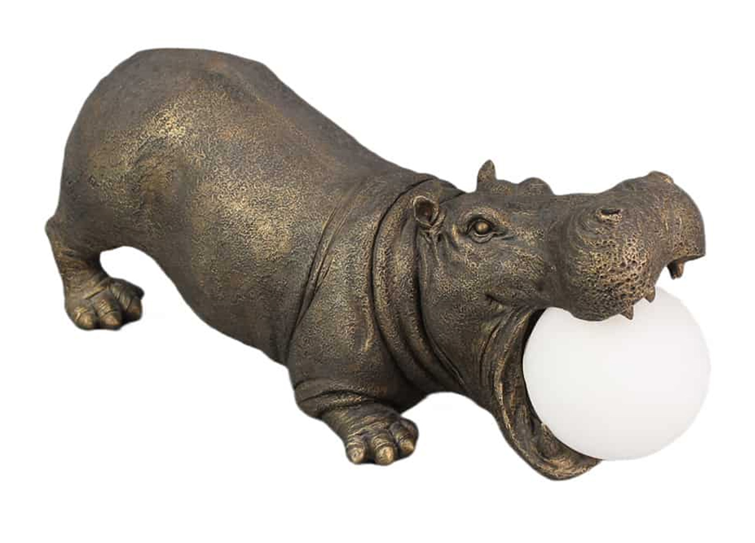 Lampe hippopotame bronze noir avec globe lumineux