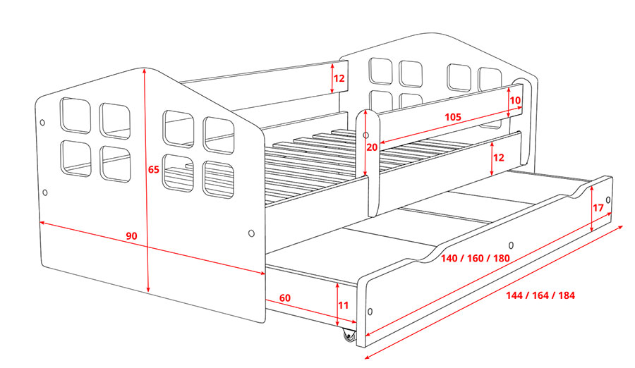 Trendymobilier > MEUBLE > Chambre enfant > Lit > Lit avec sommier, matelas et tiroir avec façades fenêtre de maison
