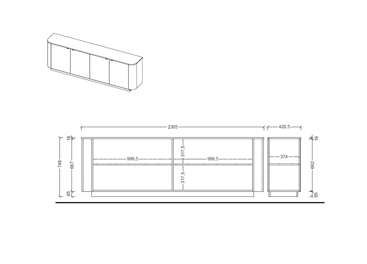 Mais ce qui fait la force de ce buffet c’est sa capacité à organiser l’espace avec efficacité. Derrière ses quatre portes, le meuble révèle un intérieur vaste, structuré et particulièrement confortable à l’usage. Le rangement s’articule autour de deux grands volumes latéraux, chacun séparé par une tablette intermédiaire, créant ainsi quatre larges compartiments faciles à répartir selon vos besoins.