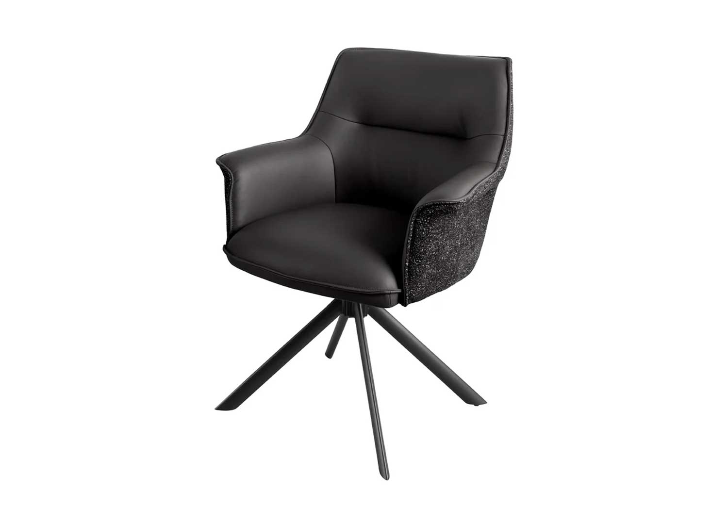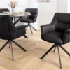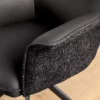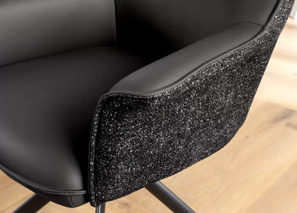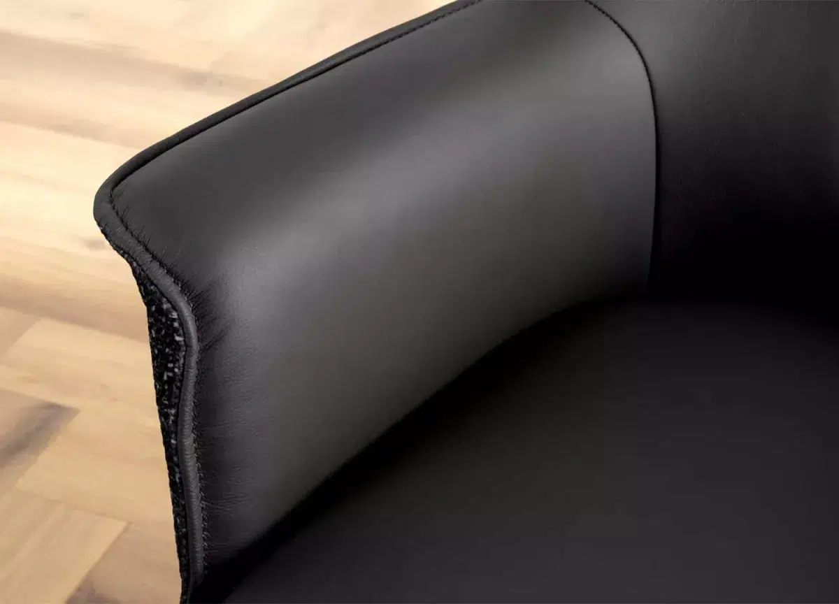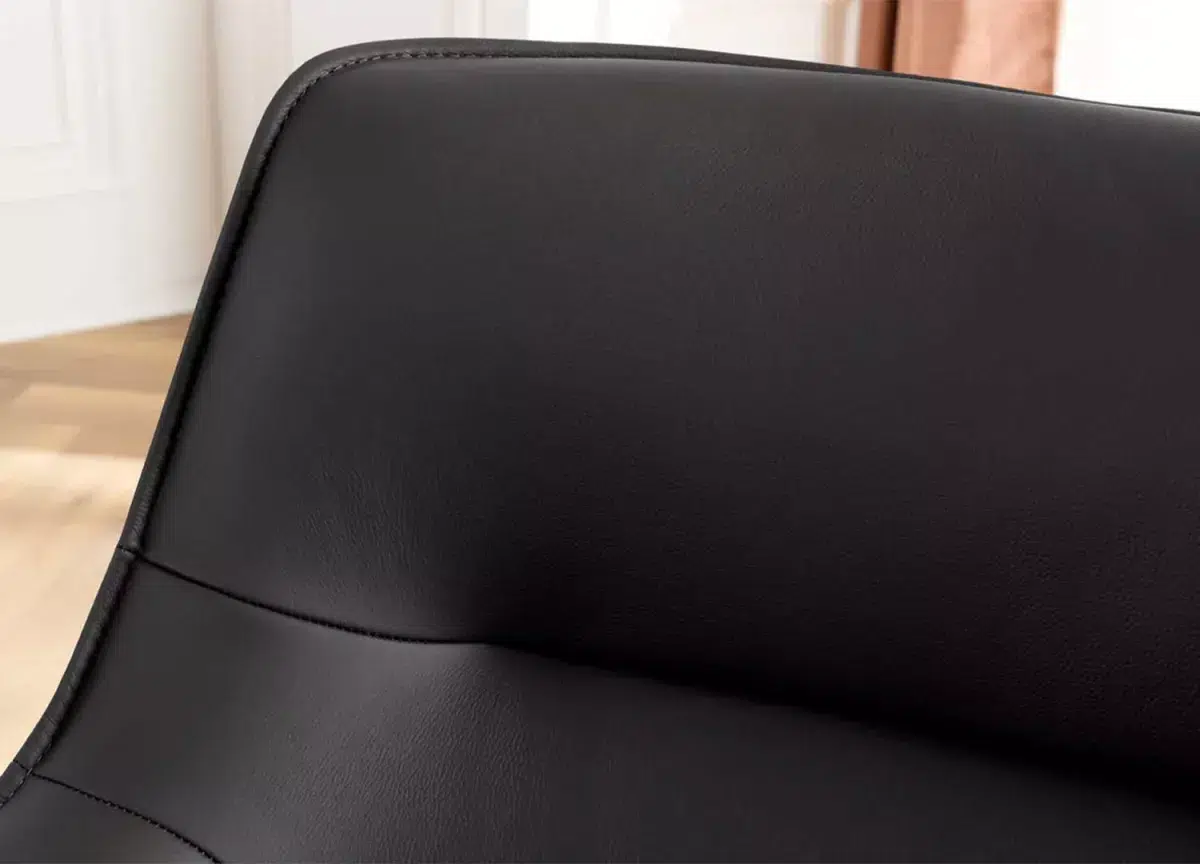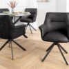 Ces chaises ne se contentent pas d’habiller votre pièce — elles lui donnent du style. Leur assise en cuir souple épouse les formes pour un confort tout en douceur, tandis que la coque extérieure en tissu chenille apporte une touche de chaleur et de texture. Le piétement en métal noir, stable et graphique, ancre l’ensemble dans une esthétique contemporaine. Et pour la touche pratique : la rotation à 180° avec retour automatique, parfaite pour garder le mouvement fluide et naturel au quotidien.