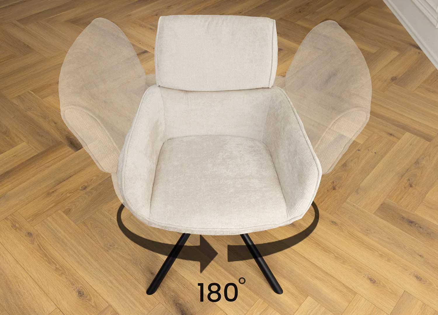 Lot de 2 chaises rotatives tissu chenille avec accoudoirs