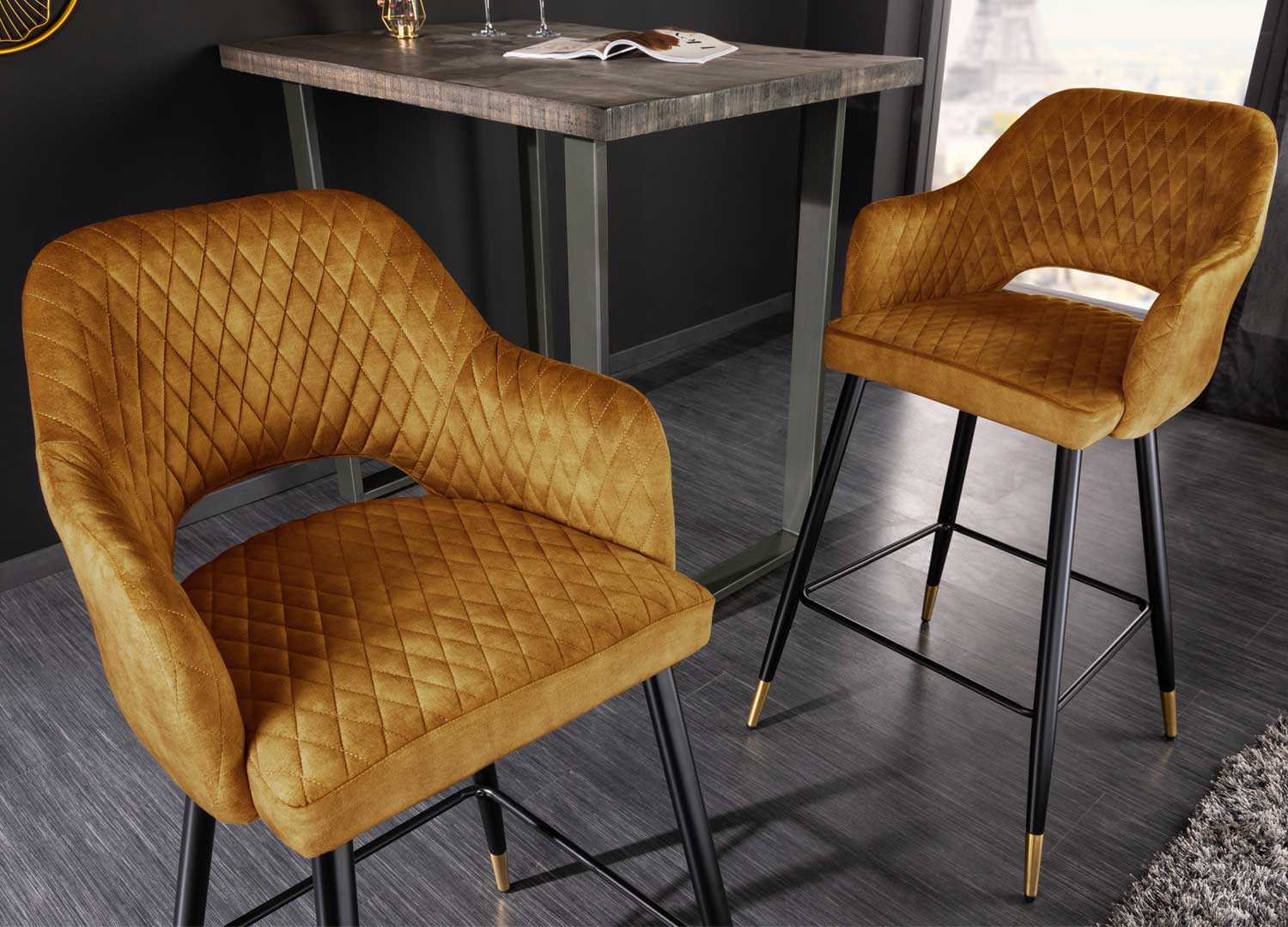 Cet ensemble élégant et confortable est parfait pour recevoir des invités ou simplement se détendre à la maison. L'ensemble comprend deux tabourets de bar en velours, disponibles en 5 couleurs différentes, qui peuvent facilement être assortis à vos chaises de salle à manger existantes. Les tabourets de bar en velours sont également dotés de pieds métalliques noirs et dorés, ce qui en fait un ajout élégant et classique à toute maison. L'assise en velours est confortable et soutient le corps, ce qui la rend parfaite pour de longues heures d'utilisation.
