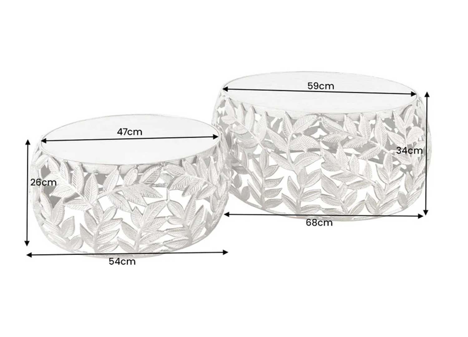 Nous sommes prêts à faire entrer la lumière dans votre intérieur avec ce superbe lot de 2 tables basses au charme délicatement sculpté. Leur structure argentée, habillée d’un élégant motif de feuillage ajouré, apporte une note précieuse et raffinée à la pièce.