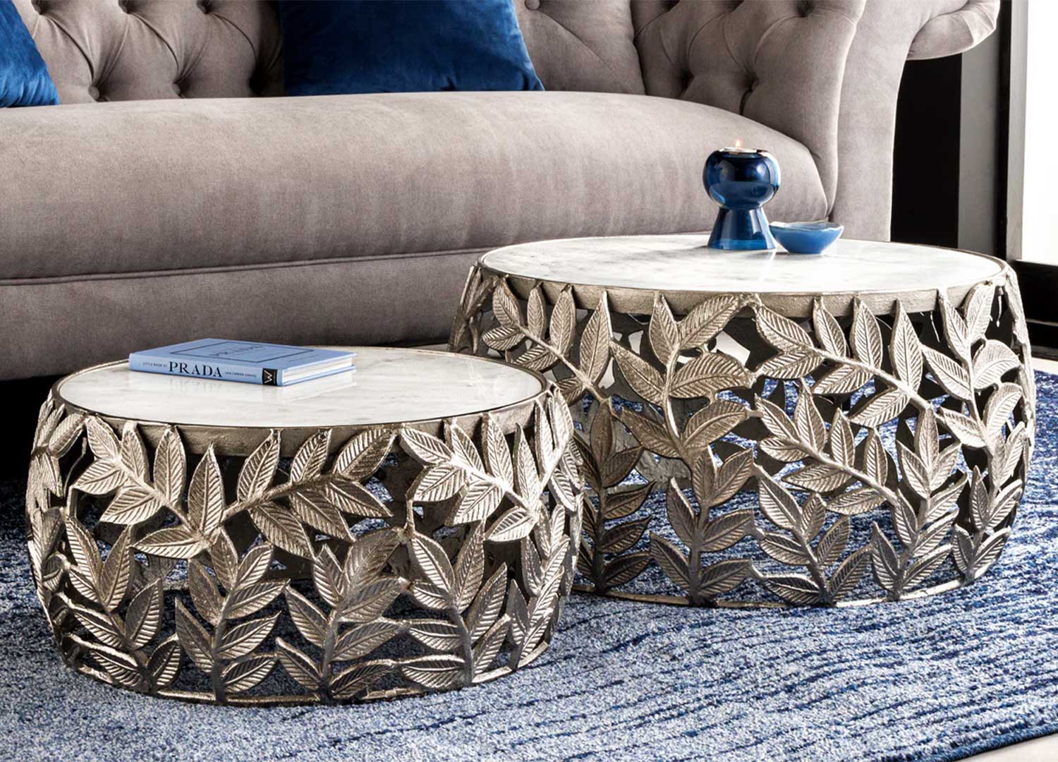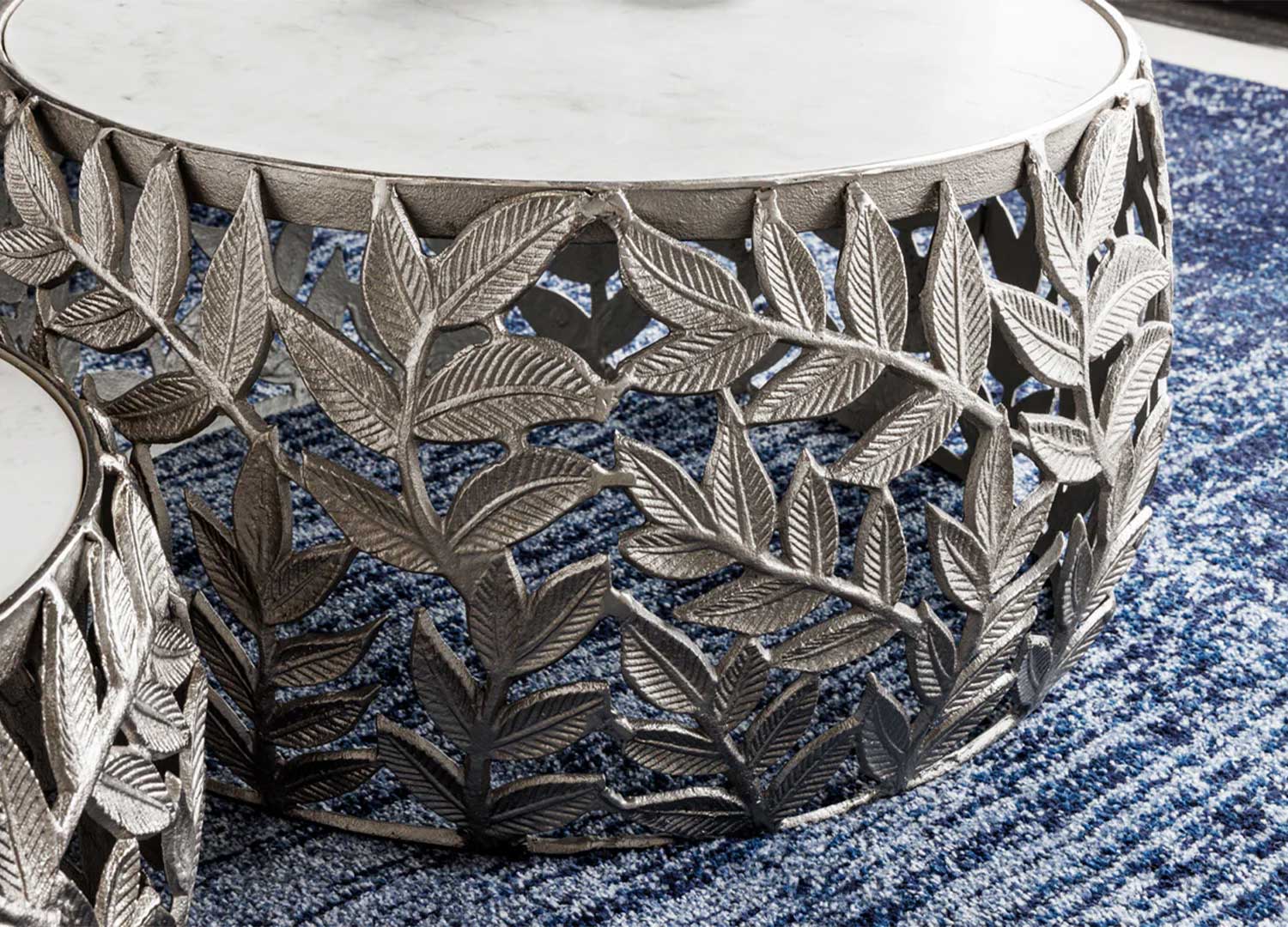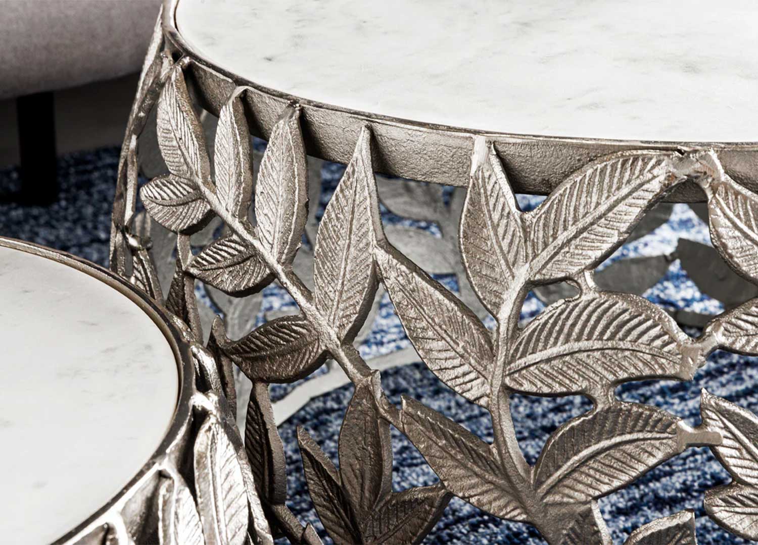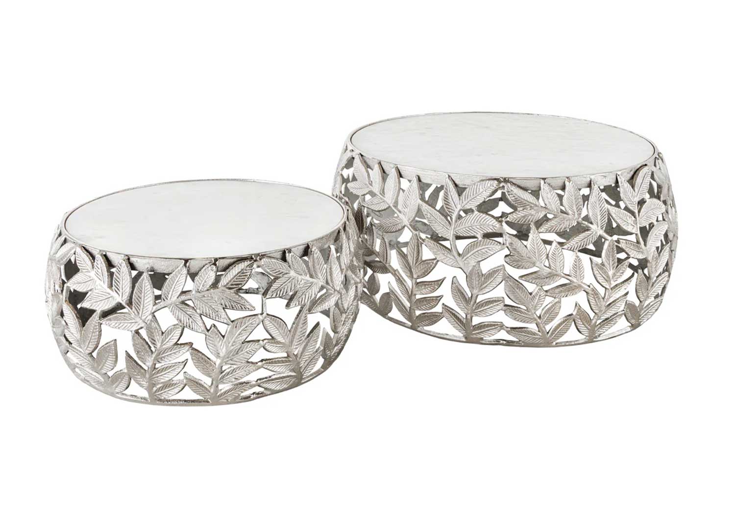 Lot de 2 tables basses argentées motif feuillage
