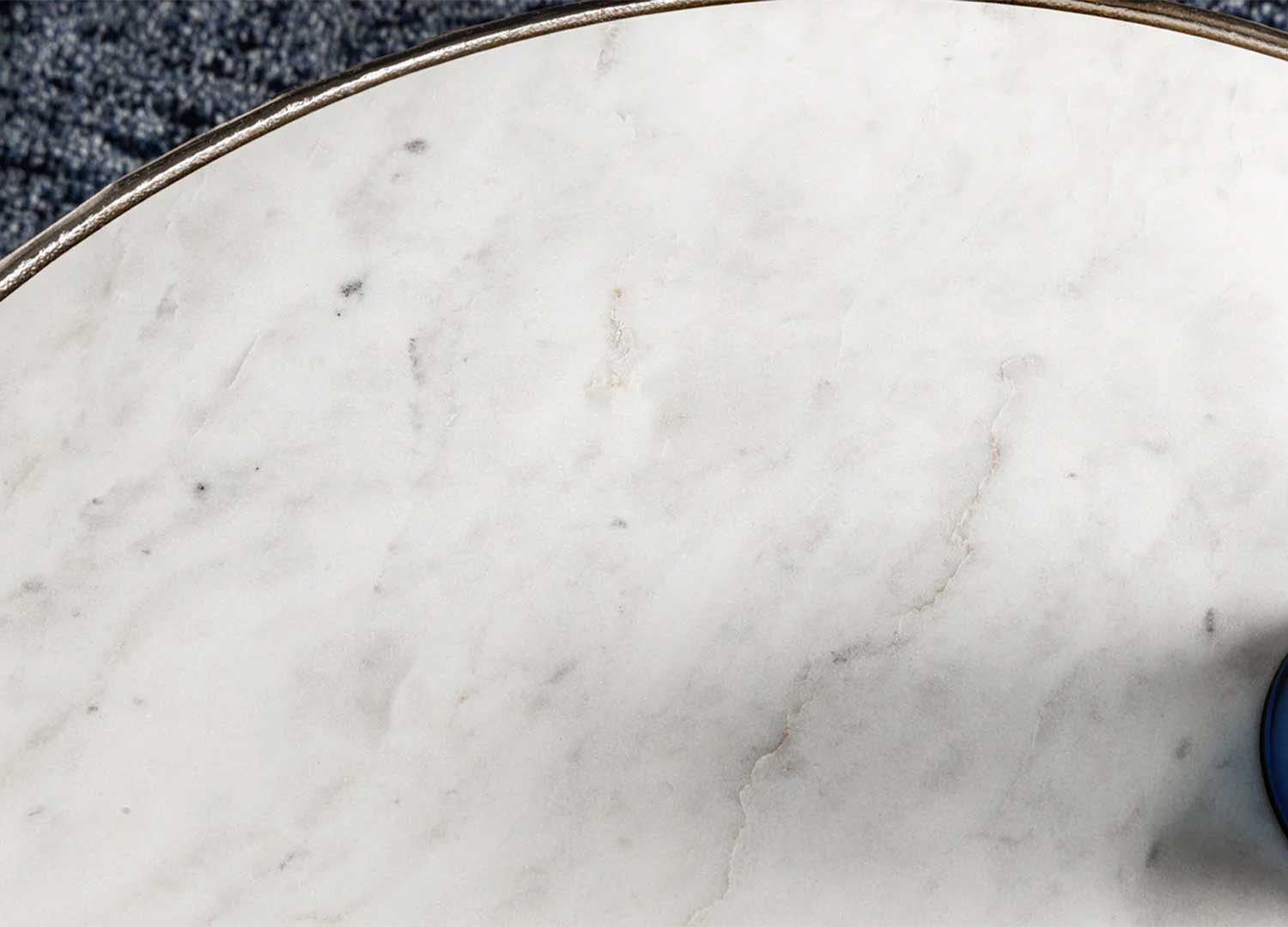 Lot de 2 tables basses argentées avec plateau en marbre blanc Coréa