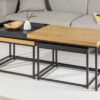 Un ensemble de tables de salon créant un look industriel avec un cadre en métal noir. Des plateaux aspect chêne pour un contraste et une modernité absolue au cœur de votre salon. N'hésitez pas à glisser vos tables d'appoint sous cette grande table de salon lorsque celles-ci ne vous sont plus utiles. Un ensemble à l'entretien facile et indispensable pour un salon design.