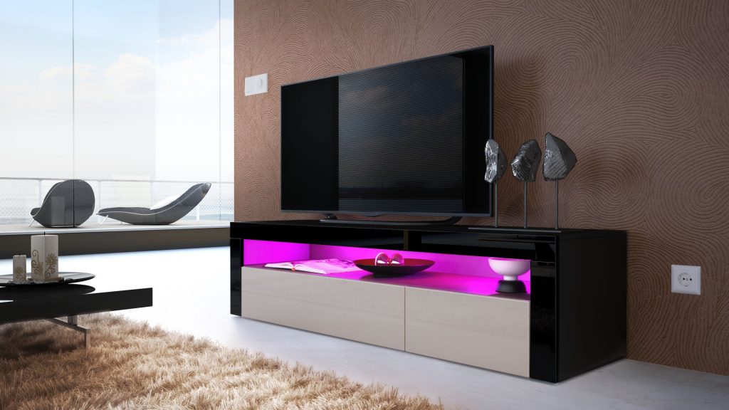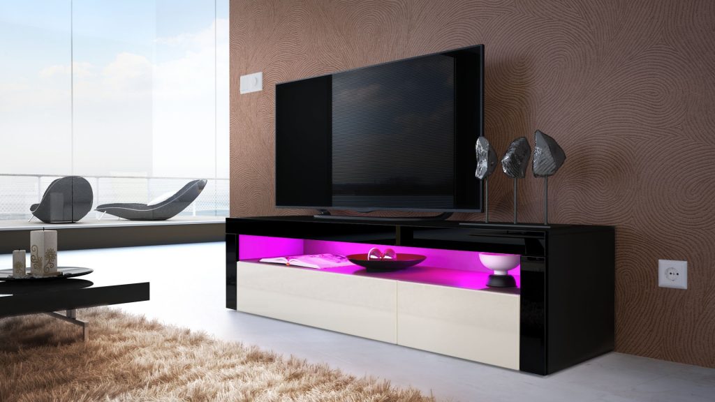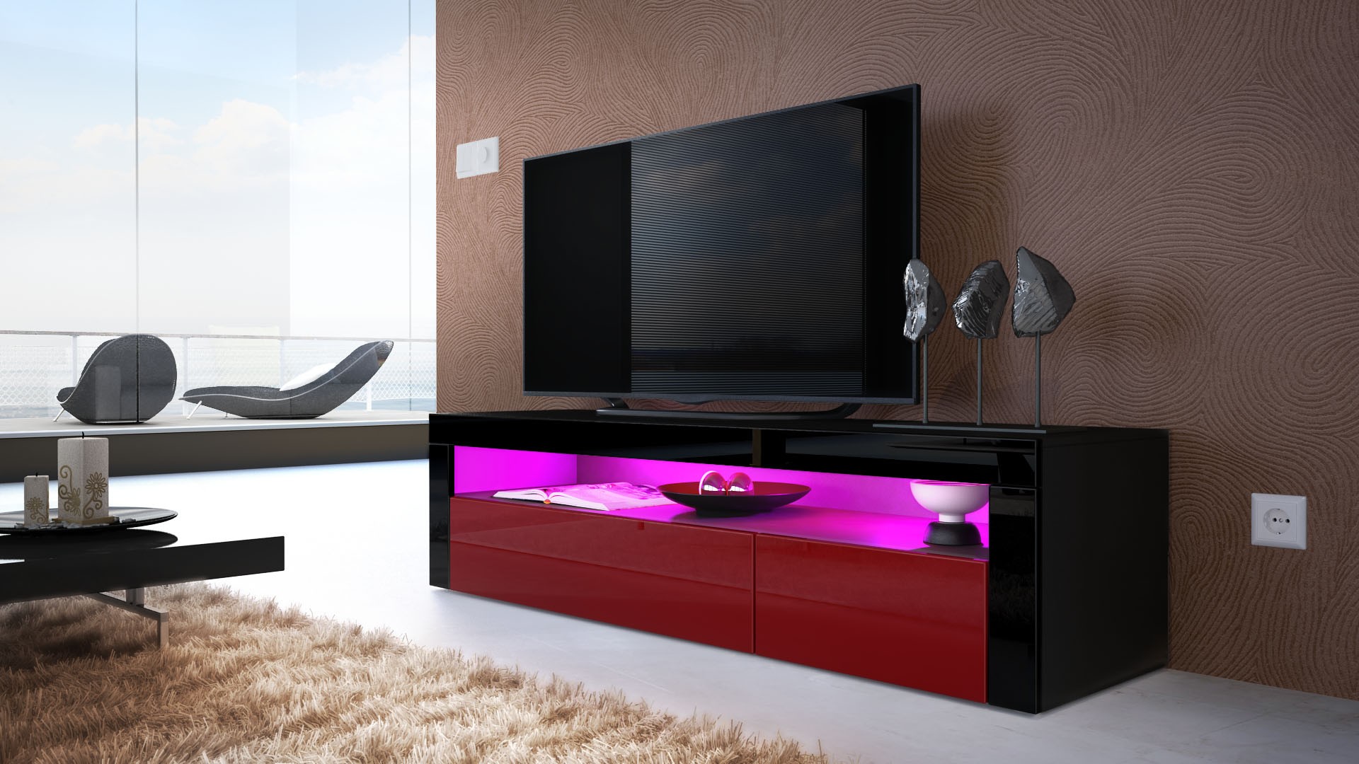Au premier regard ce meuble banc télé design de structure noire se veut moderne et invite au charme dans le salon. Ce meuble tv dispose de une niche ouverte parfaite pour les appareils hifis. Derrière les deux portes abattantes vers le bas, les cds, dvds ou tout autre accessoire de salon pourront être rangés soigneusement. Choisissez votre meuble télé en fonction des finitions de votre intérieur grâce à notre large sélection de couleurs.