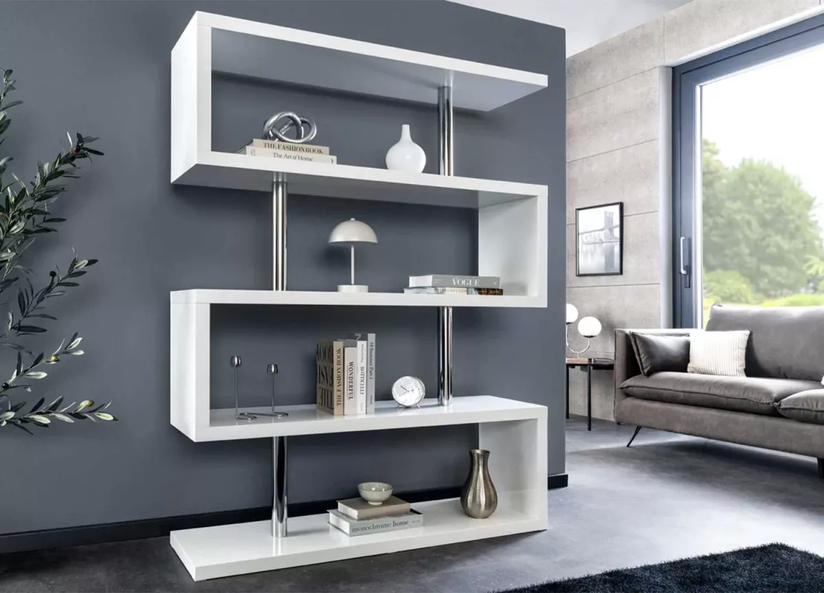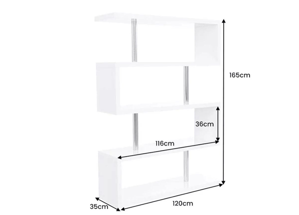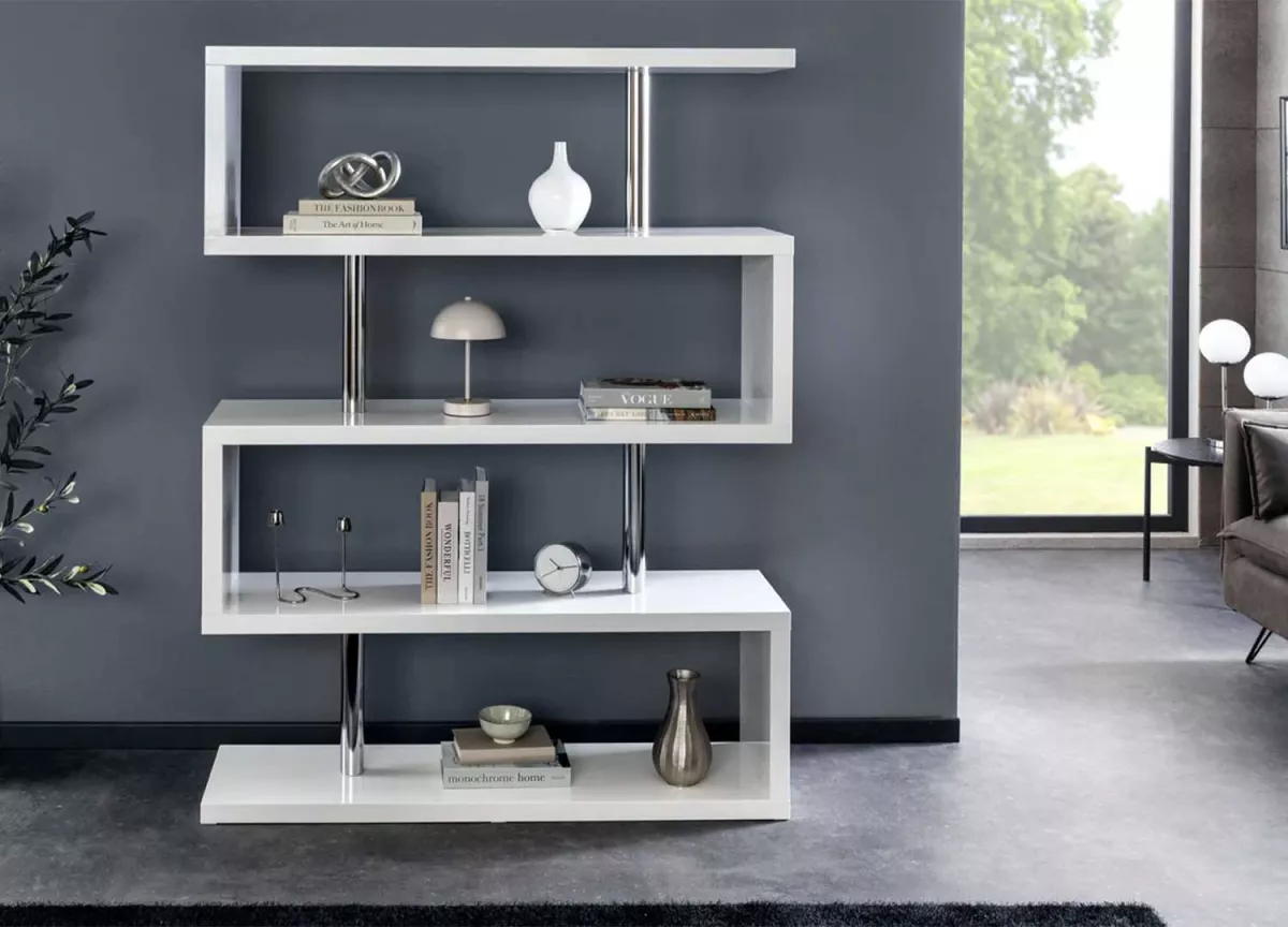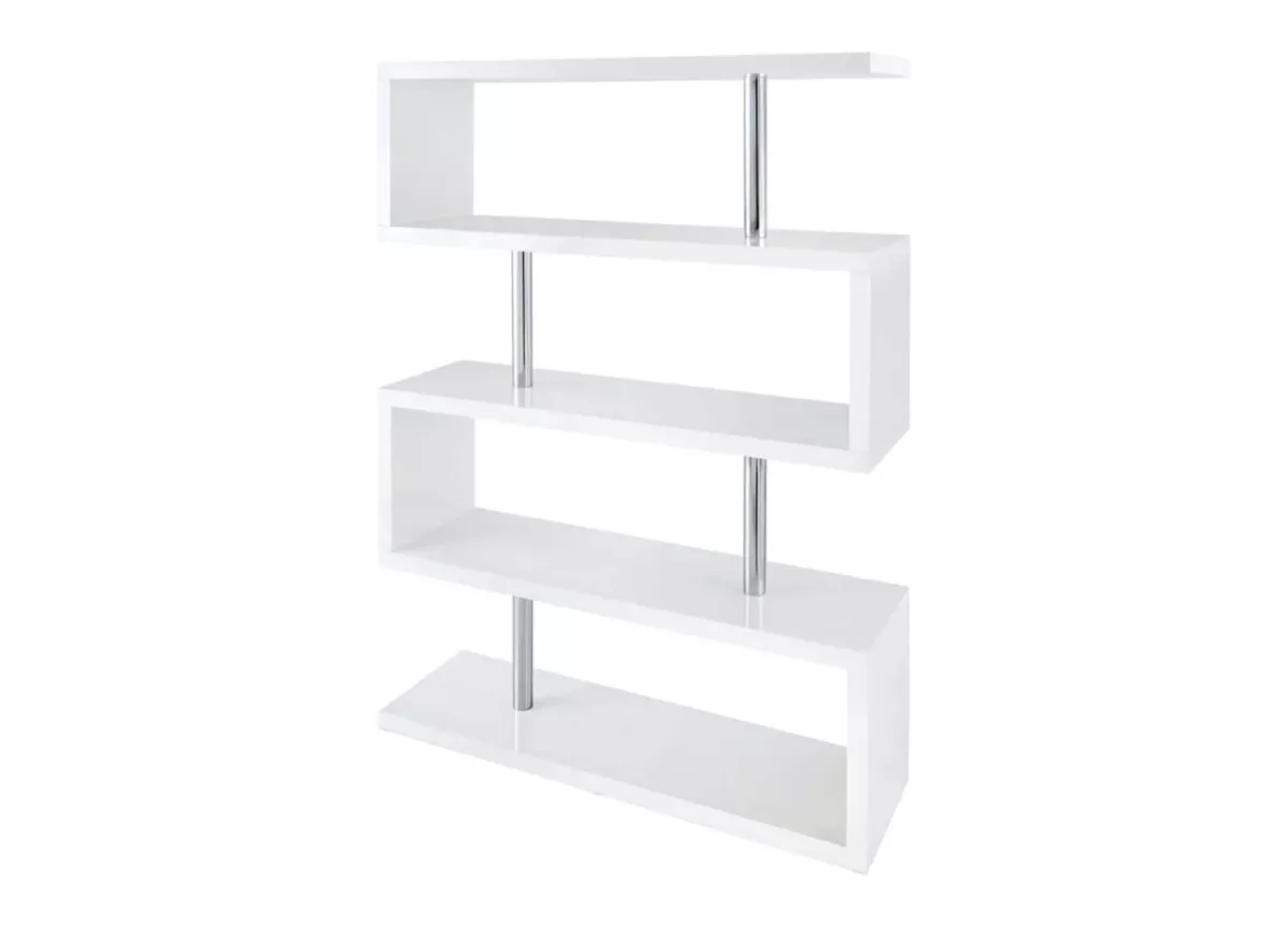 Un véritable accroche regard dans votre salon ou dans votre pièce de travail. Une bibliothèque originale blanche laquée brillante et métal chromé pour créer un style design moderne au modèle. Un meuble bibliothèque avec des étagères soutenue par de solide entretoises métalliques chromées. Un design intemporel et moderne pour déposer vos livres, de la décoration ou des souvenirs de vacances.