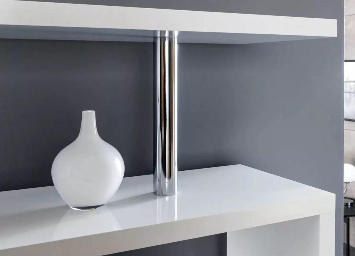 Meuble étagère blanc laqué brillant et chrome