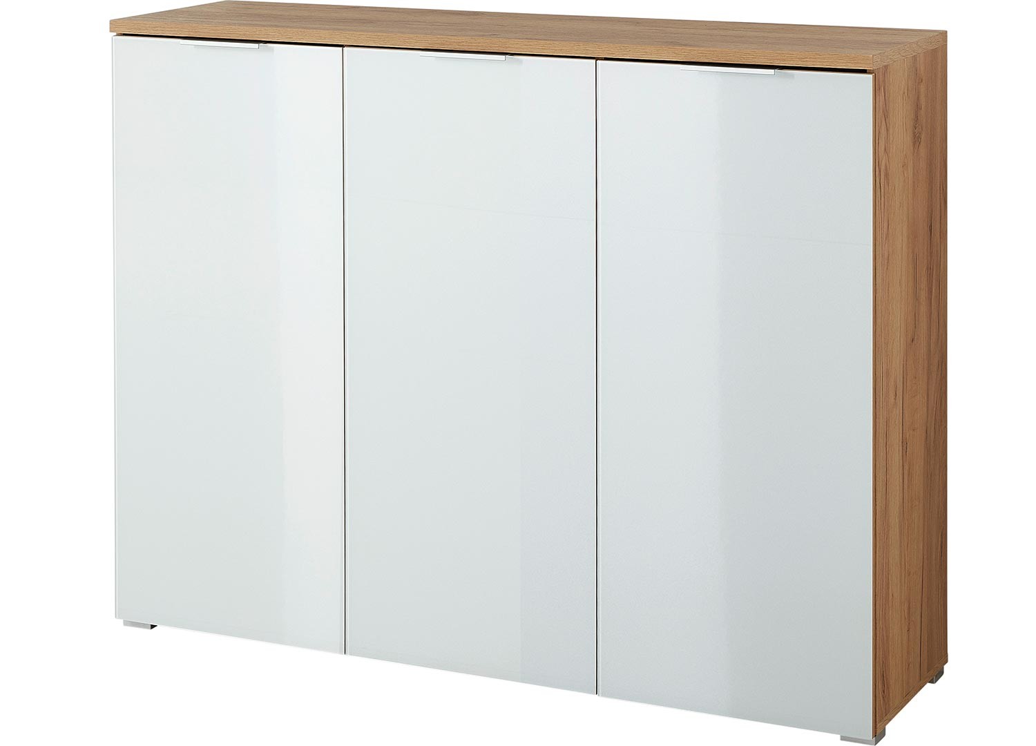 Un meuble à chaussure de la gamme qui, par ses façades en verre teintés blanc et son corps en bois de chêne Navarra, va permettre de donner une prédominance du clair dans votre entrée. Avec ses 3 portes contenant chacune d'elles 4 tablettes réglables, vous pourrez y entreposer tout type de chaussures : quelles soient imposantes tel que des talons ou des bottes, ou de plus petites tailles tels que des basket ou des escarpins.