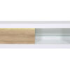 Un meuble télé blanc laqué brillant avec porte coulissante et façade composée de motifs courbés en décor bois de chêne pour un style moderne et épuré. Rangez quelques appareils multimédias dans le compartiment gauche et disposez une décoration dans sa niche ouverte droite grâce à sa tablette en verre. Un éclairage LED blanc vient ajouter une touche tendance et lumineuse à votre meuble de télé blanc. Associez ce meuble de télévision avec les autres meubles blanc laqués et bois de la même collection pour un intérieur aux couleurs et au design moderne.