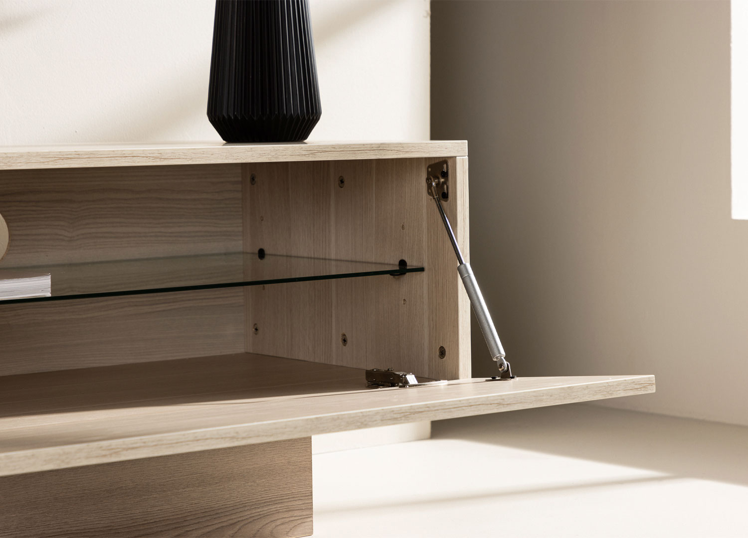 Meuble TV 160cm aspect bois blanchi 2 portes abattantes