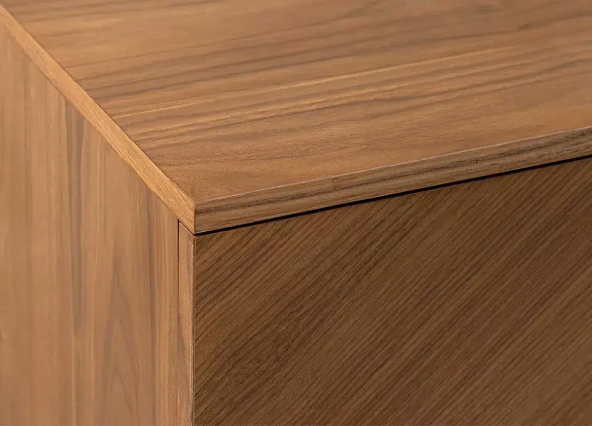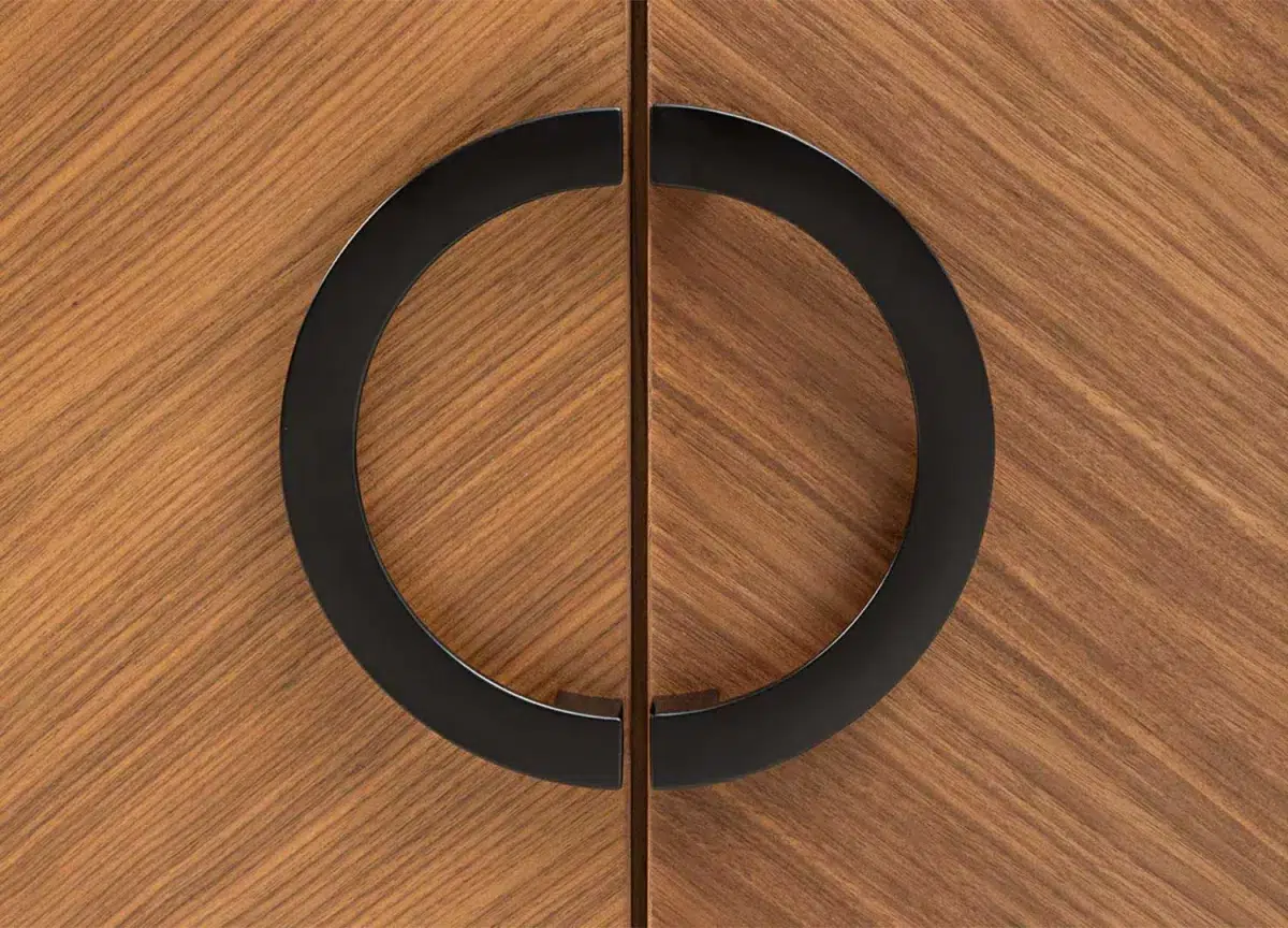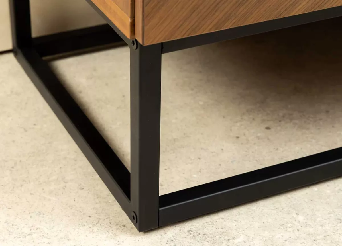 Sous ses allures sages, ce meuble TV de 180 cm cache un vrai tempérament. Son placage noyer foncé capte la lumière, ses lignes se tendent, puis s’adoucissent, et son piétement en métal noir le fait presque léviter. Derrière ses portes aux grandes poignées graphiques, un monde bien rangé : câbles, box et secrets du salon disparaissent avec élégance. À mi-chemin entre nature et design, il impose sa présence sans bruit — juste une note de calme et de caractère au cœur du séjour.
