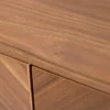 Sous ses allures sages, ce meuble TV de 180 cm cache un vrai tempérament. Son placage noyer foncé capte la lumière, ses lignes se tendent, puis s’adoucissent, et son piétement en métal noir le fait presque léviter. Derrière ses portes aux grandes poignées graphiques, un monde bien rangé : câbles, box et secrets du salon disparaissent avec élégance. À mi-chemin entre nature et design, il impose sa présence sans bruit — juste une note de calme et de caractère au cœur du séjour.