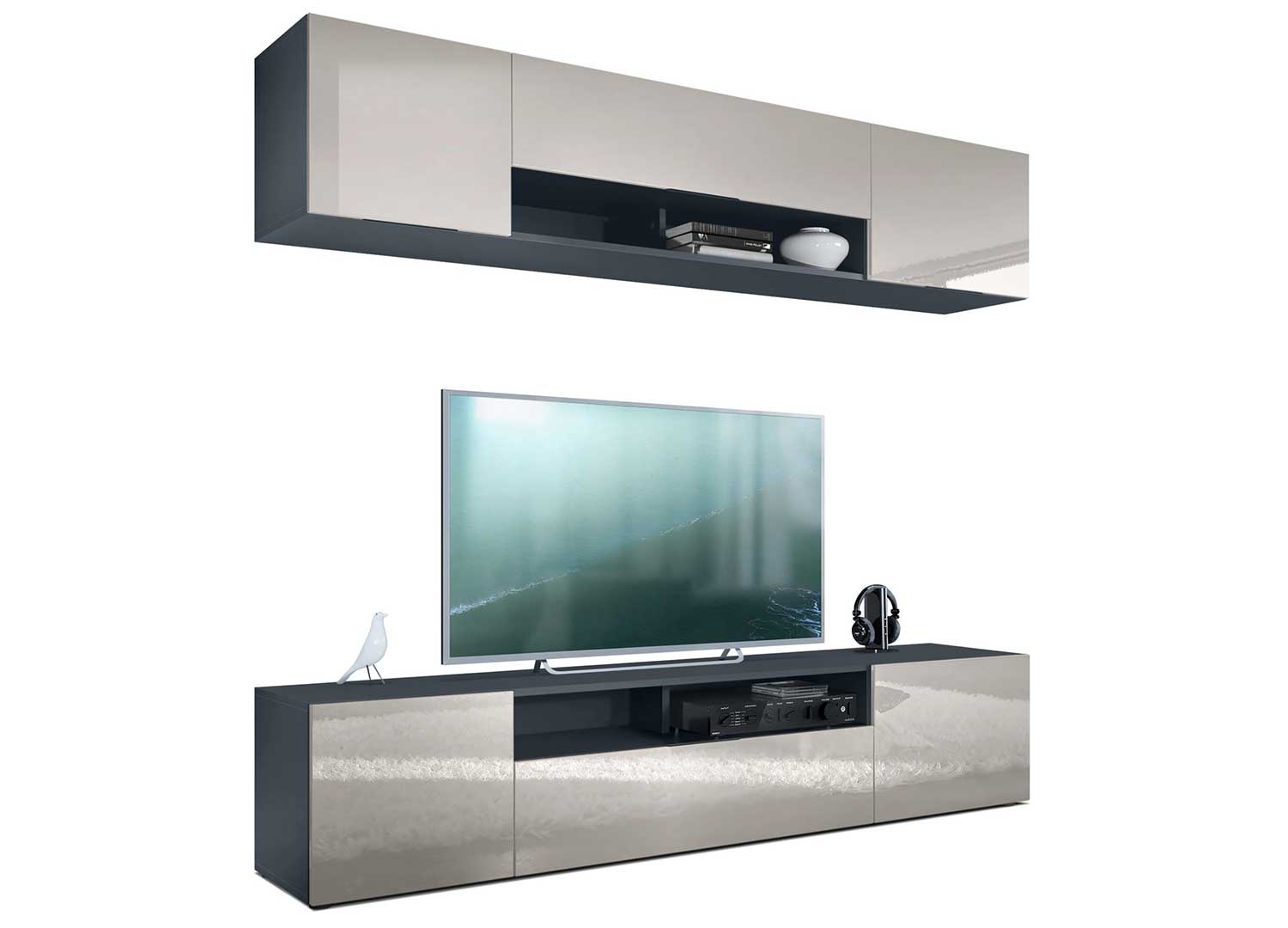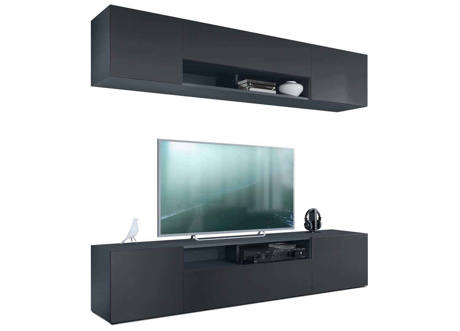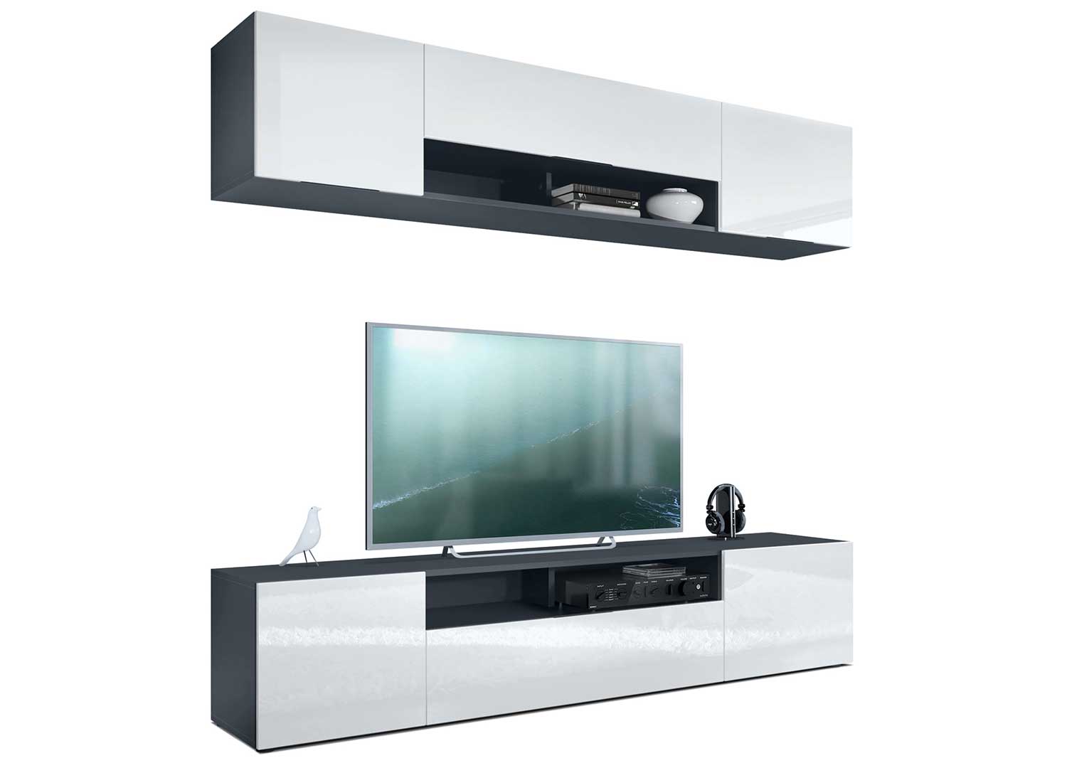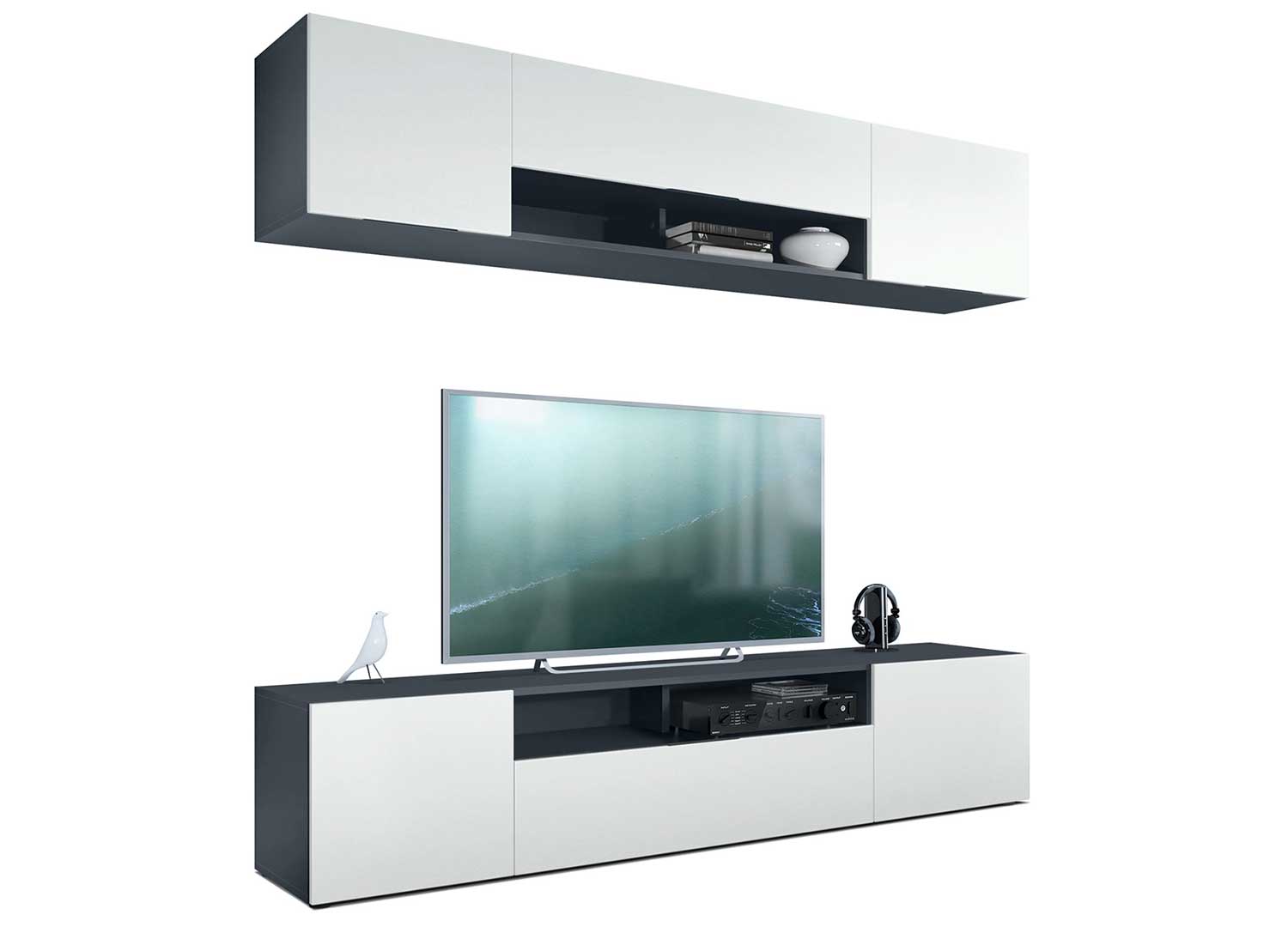 Ensemble TV mural anthracite avec façades au choix