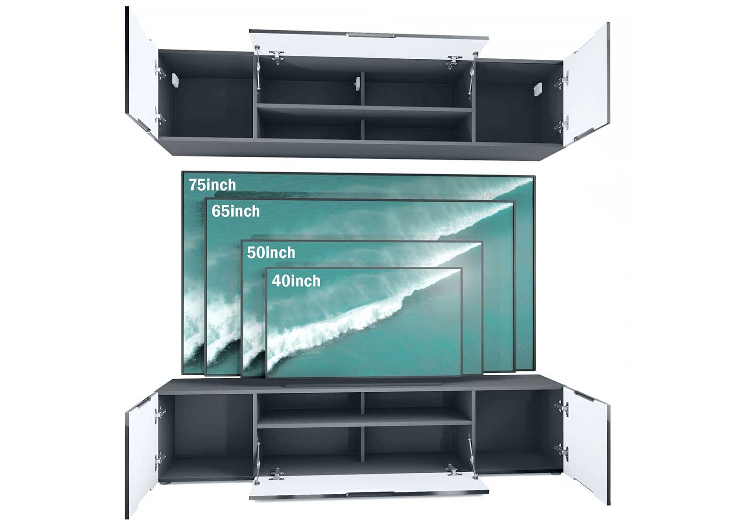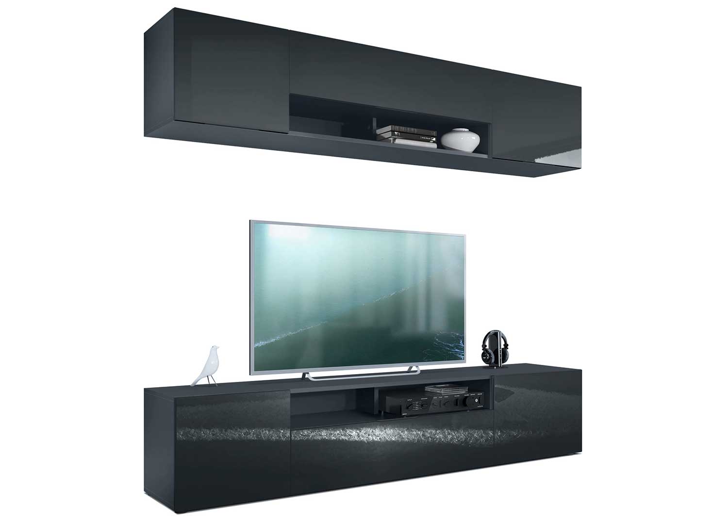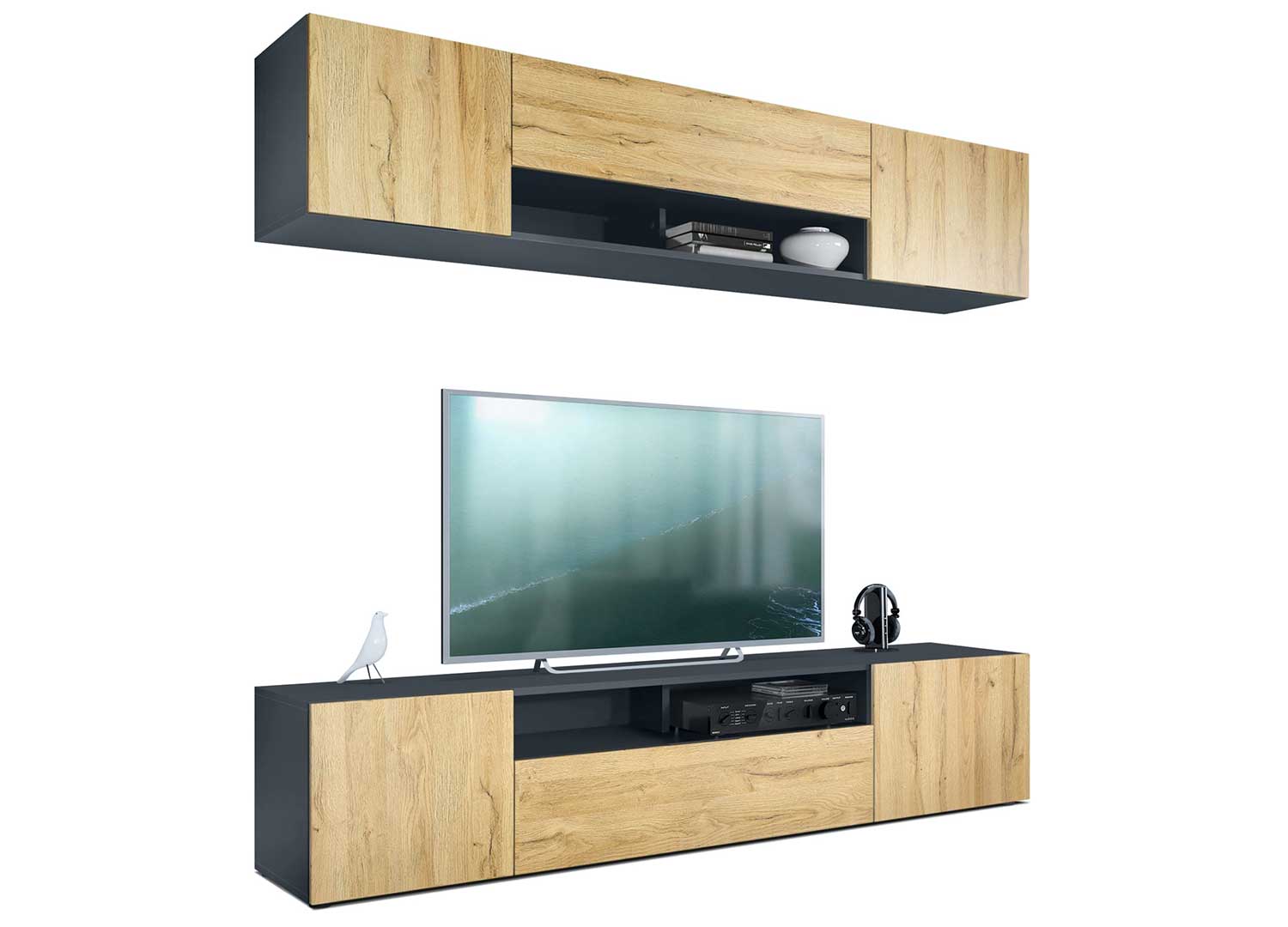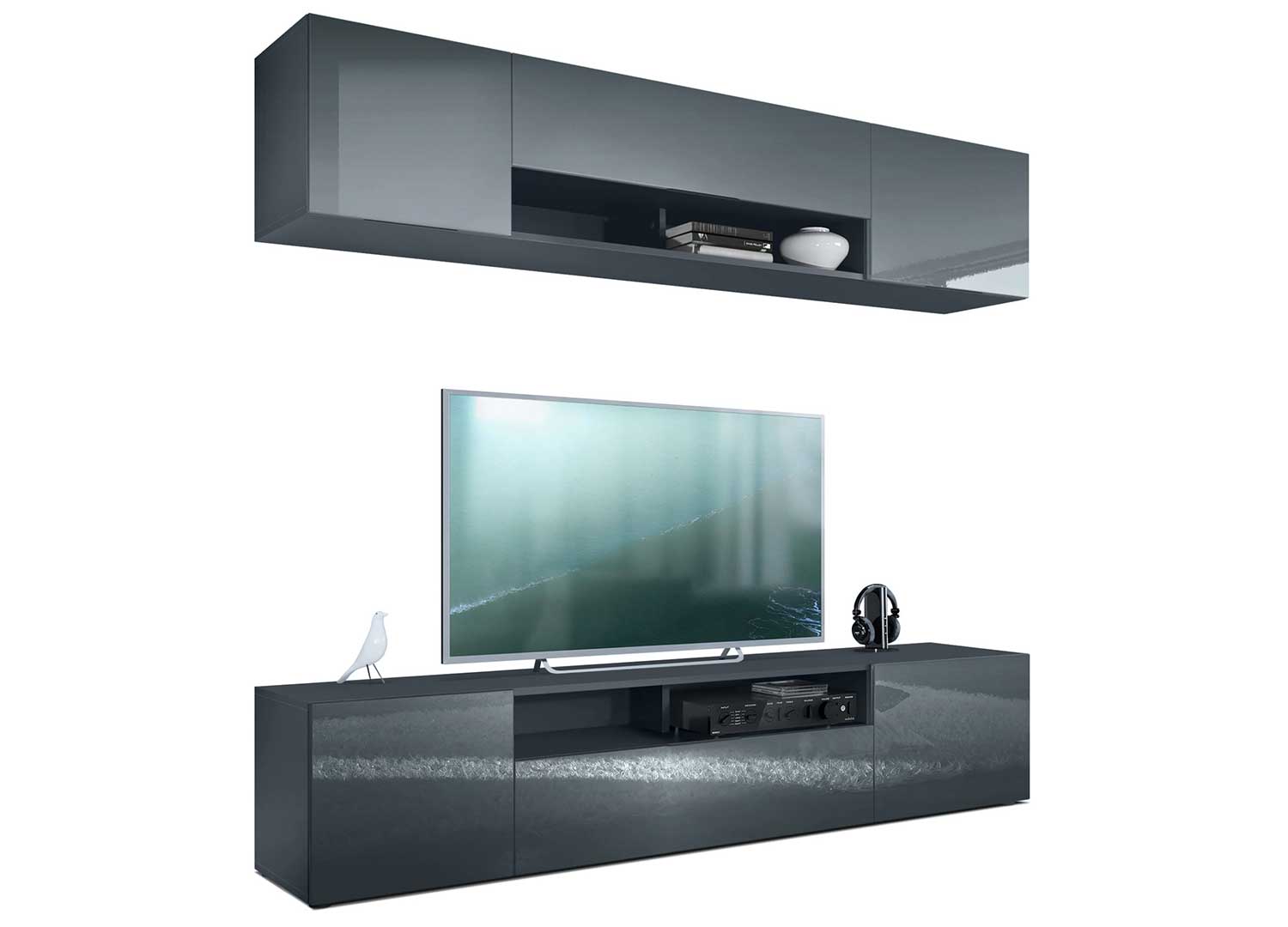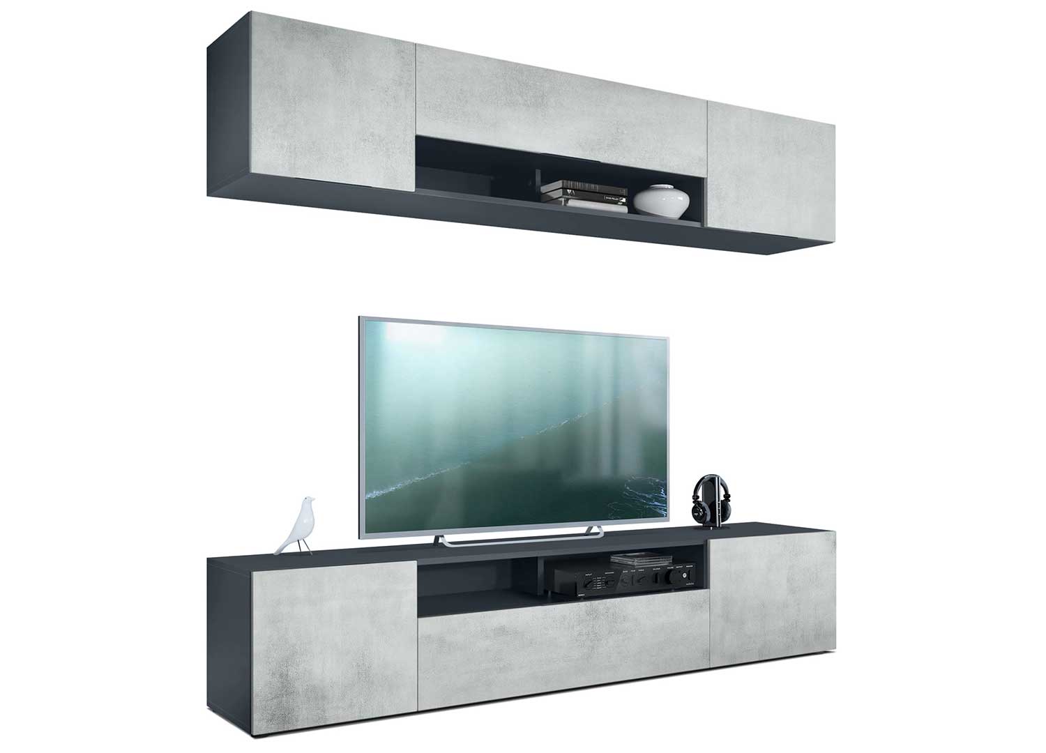 Ensemble TV mural anthracite avec façades au choix
