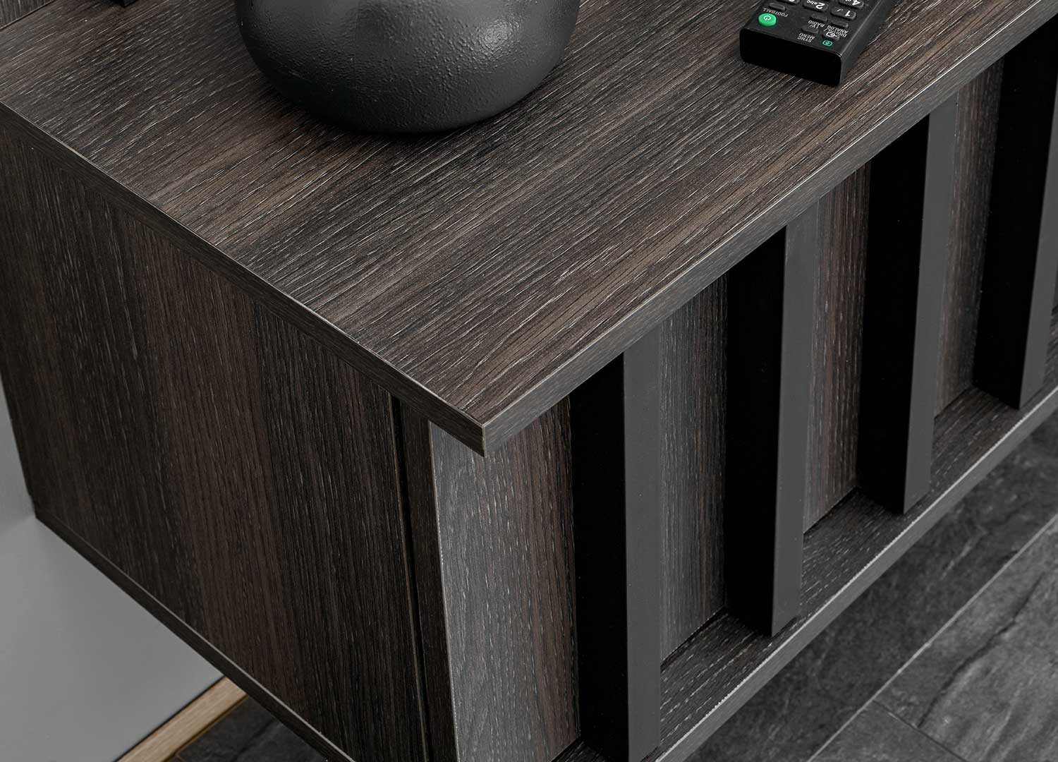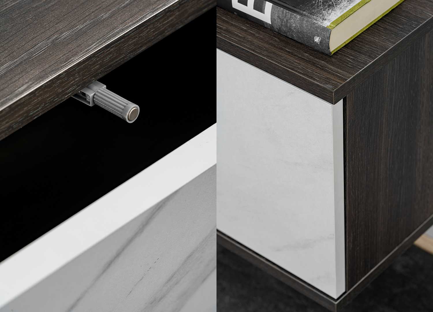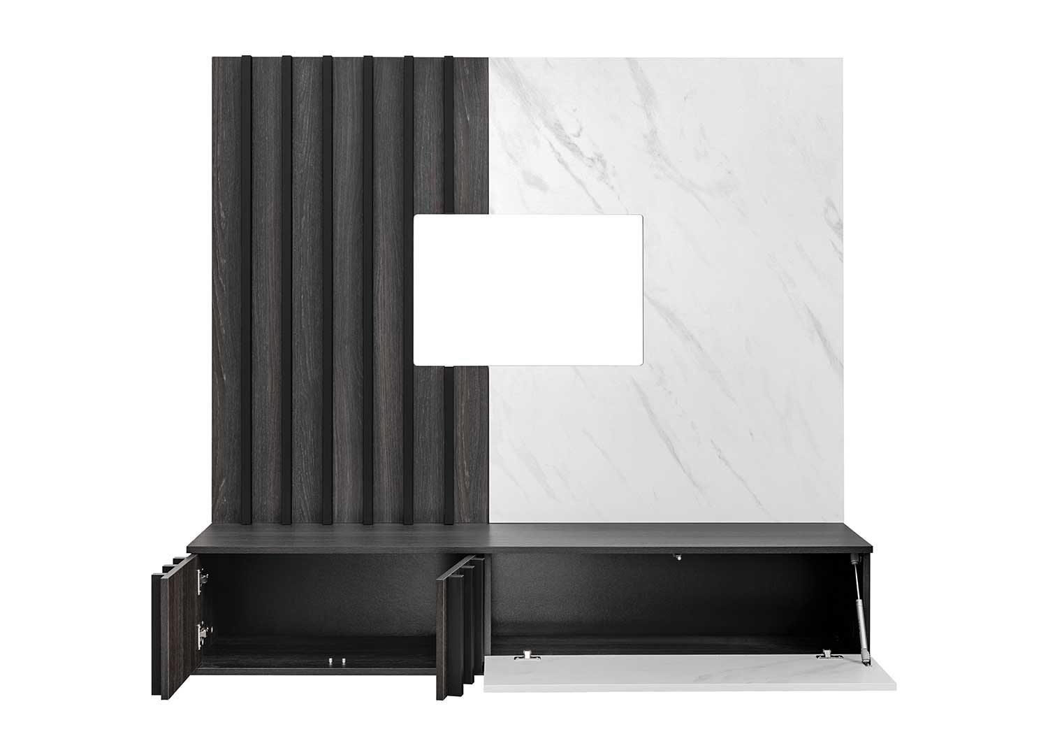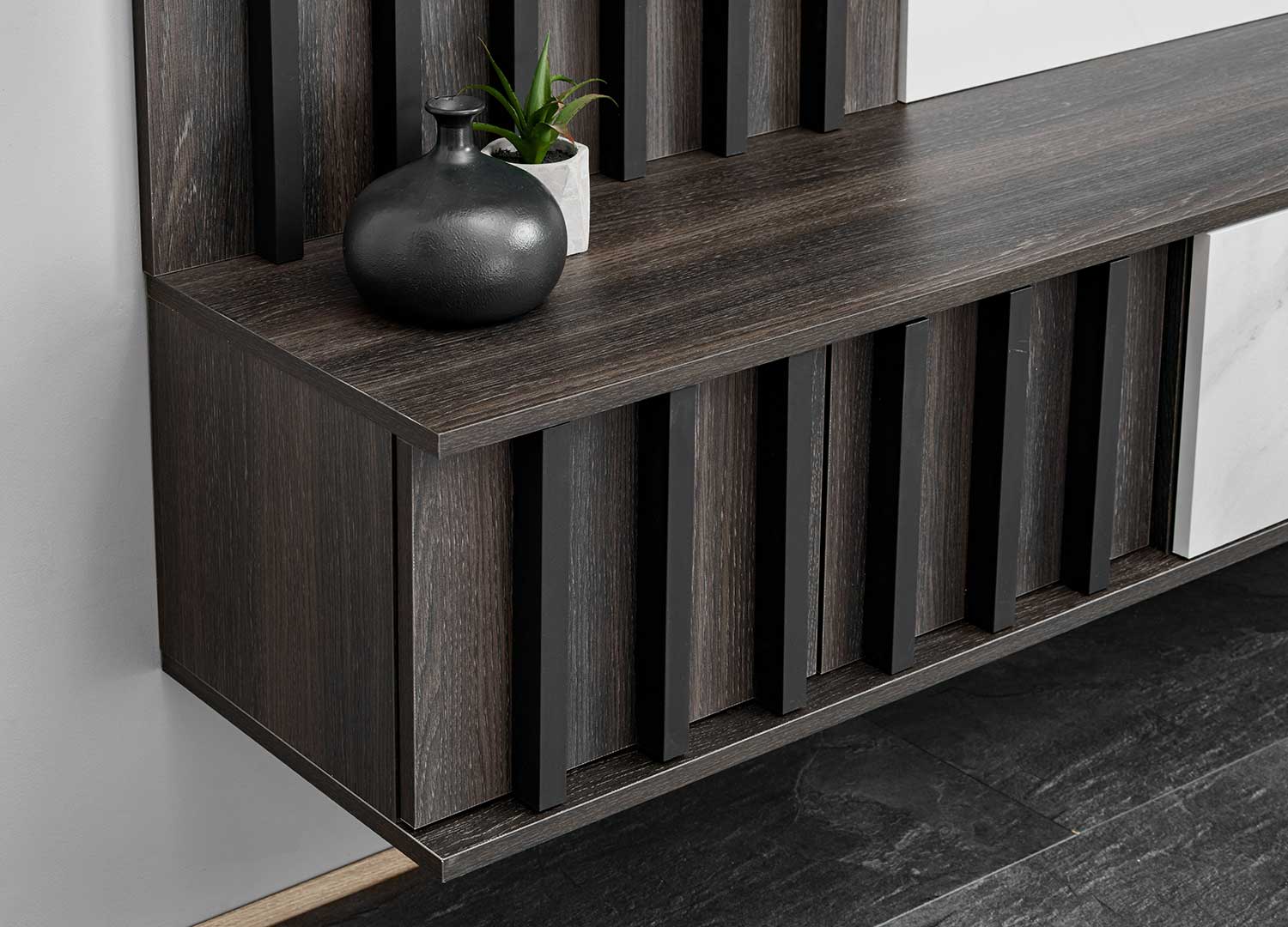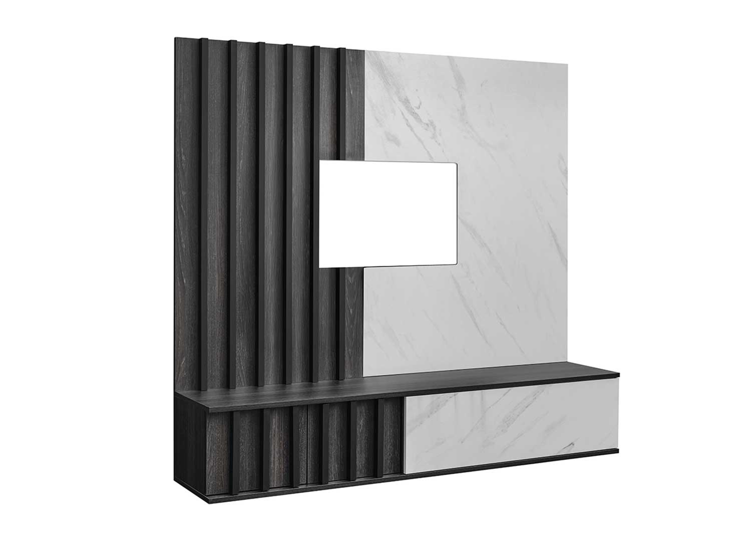 Meuble TV mural moderne graphite et marbre blanc