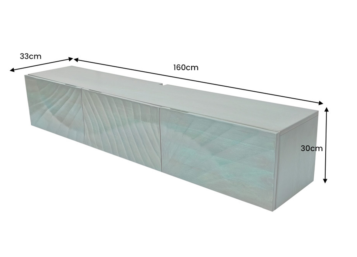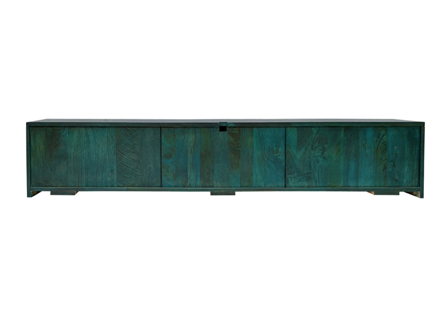 Meuble TV suspendu en manguier massif finition turquoise 160 cm