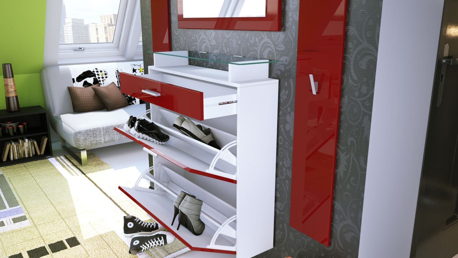 Pour une entrée organisée et fonctionnelle, optez pour cet ensemble à suspendre au mur. Disponibles avec plusieurs couleurs de façades, ces meubles vous permettront de ranger chaussures et manteaux dans une entrée restreinte ou dans un petit couloir.