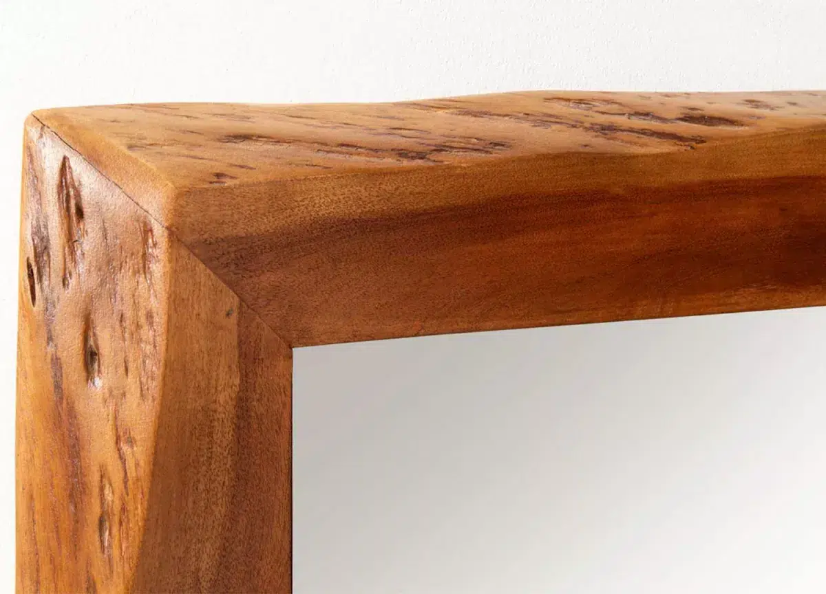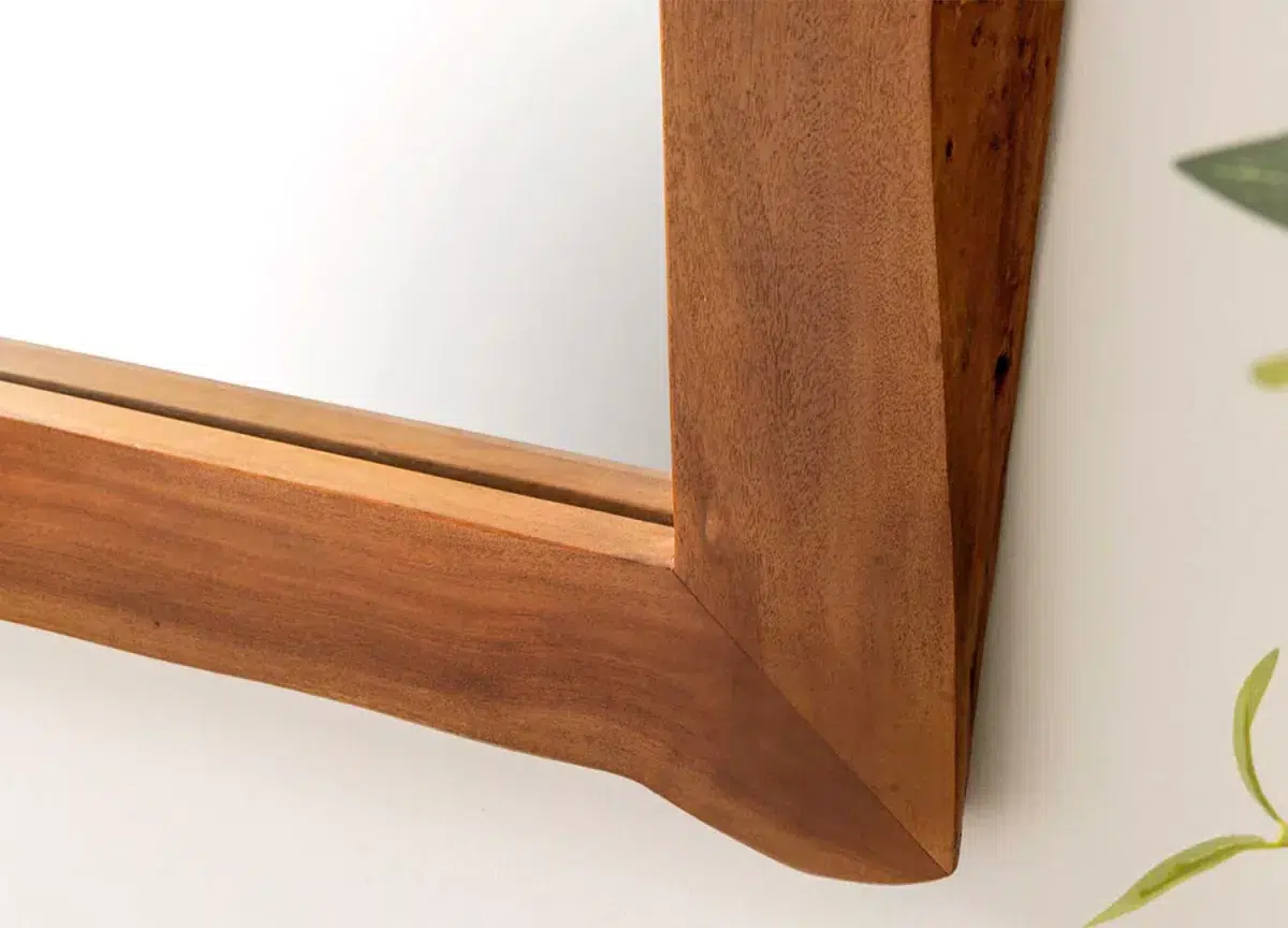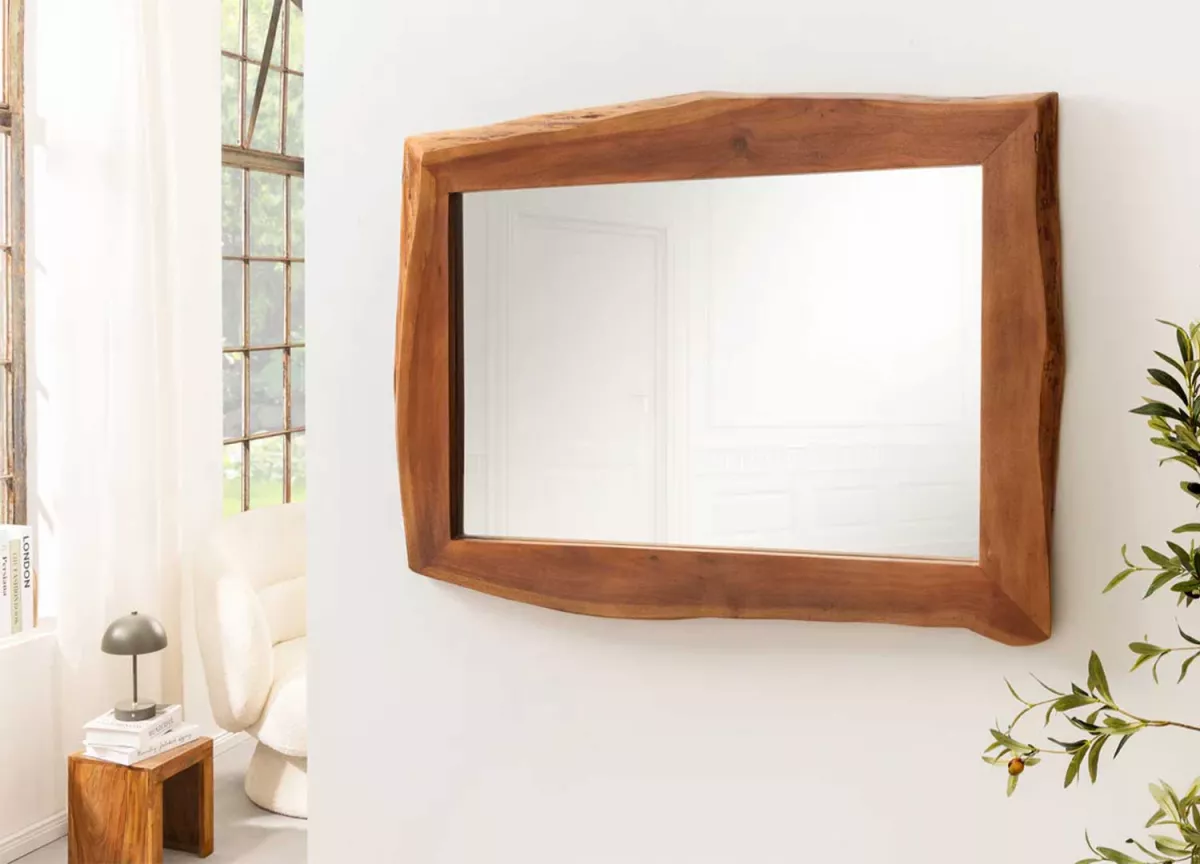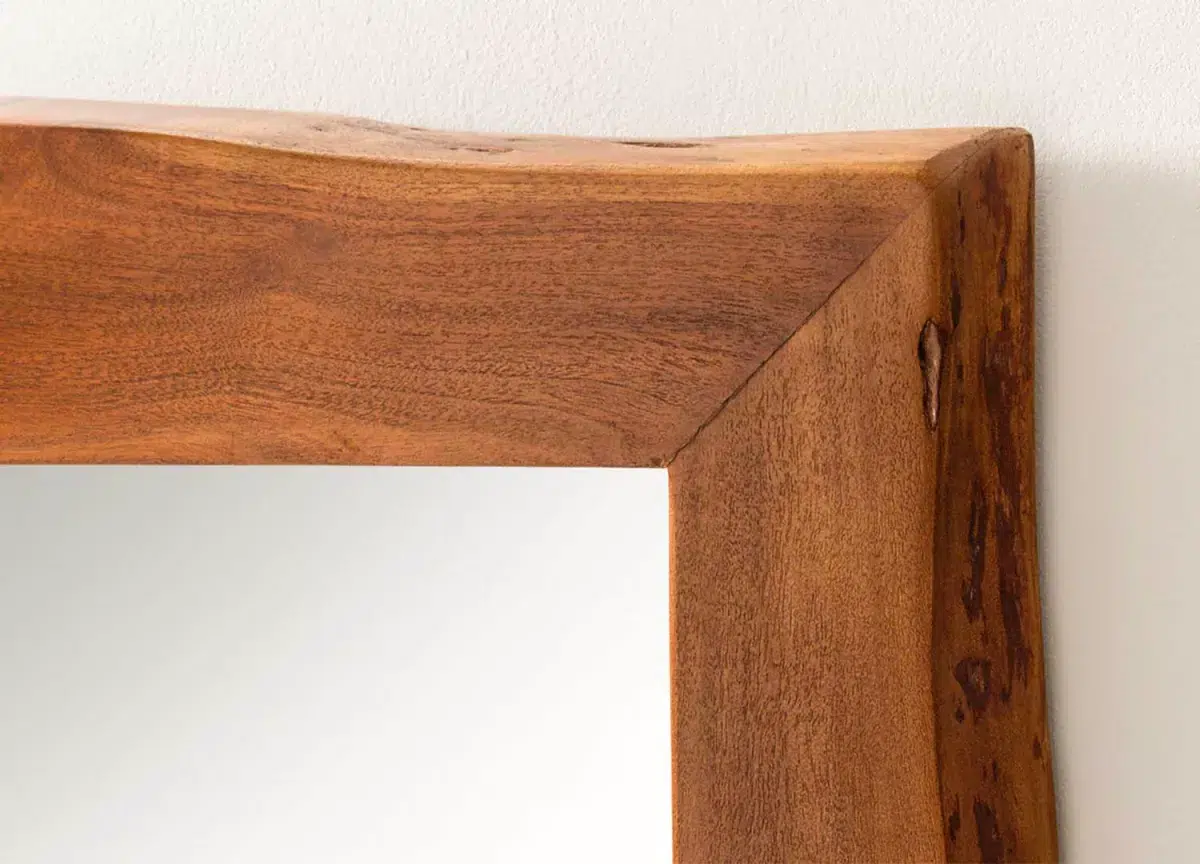 Alliance parfaite entre authenticité et élégance, ce miroir rectangulaire en bois massif d’acacia fait entrer la nature dans votre intérieur. Son cadre aux lignes organiques, taillé dans une essence noble et chaleureuse, révèle toute la beauté du bois brut. Avec ses 100 cm de hauteur, il trouve facilement sa place dans une entrée, une salle de bain ou au-dessus d’une commode, ajoutant une note lumineuse à votre décoration. Compact mais plein de caractère, il agrandit visuellement l’espace tout en y insufflant une présence naturelle.