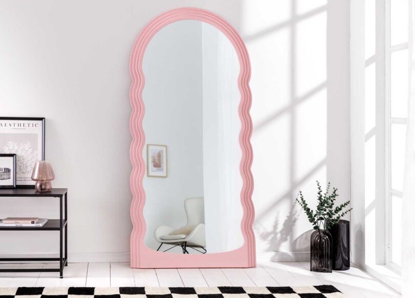 Avec une hauteur majestueuse de 160 cm, ce miroir en arche offre une esthétique élégante et moderne. Sa couleur de rose injecte une douceur rafraîchissante à son apparence. Son cadre est embelli de motifs ondoyants délicats qui apportent un dynamisme artistique à l'objet. Son style avant-gardiste se fond harmonieusement dans diverses palettes décoratives, créant une sensation de luminosité et d'expansion dans votre espace de vie. Ce miroir est l'option idéale pour ceux qui cherchent à fusionner beauté et fonctionnalité dans leur aménagement intérieur.