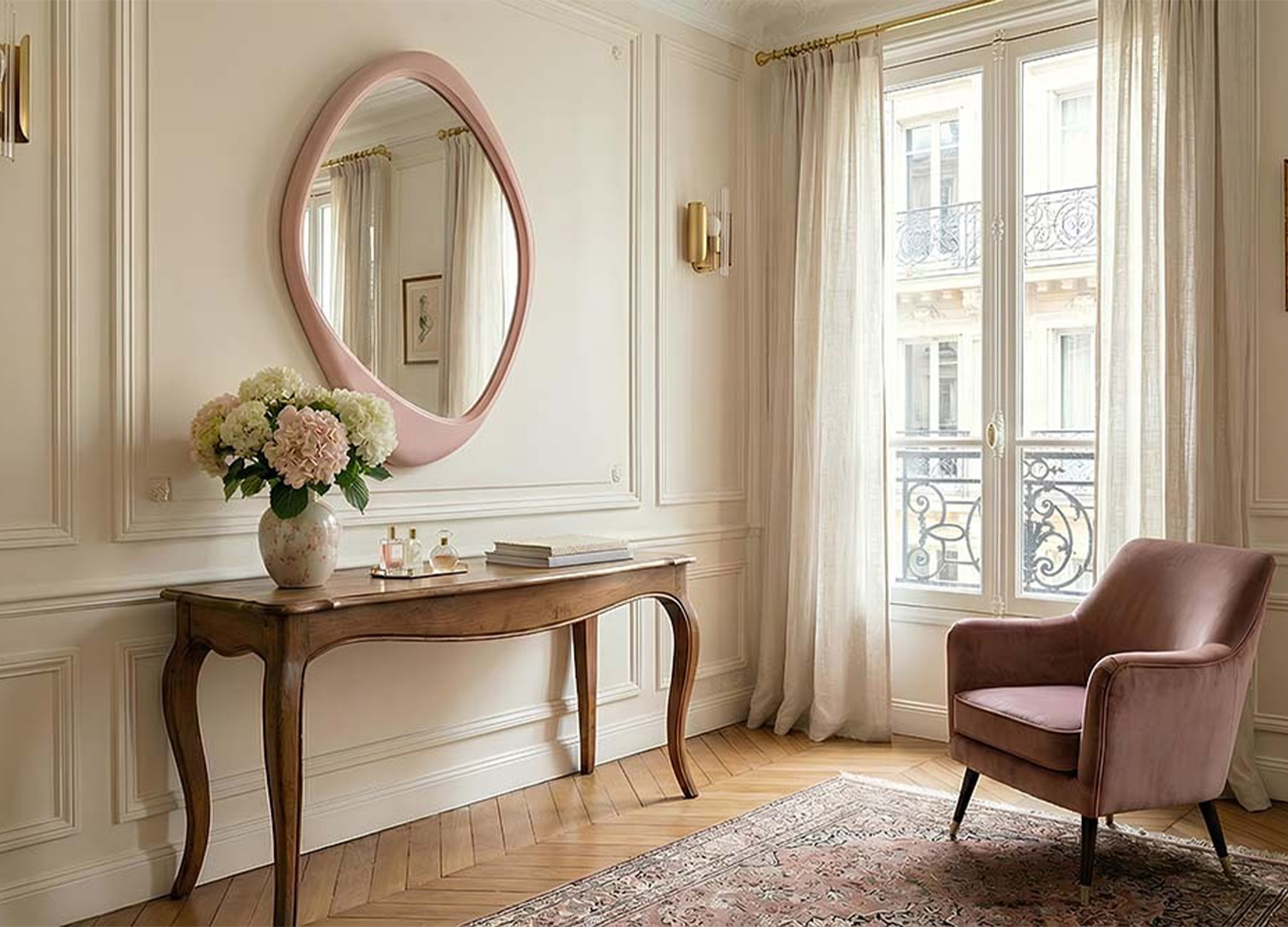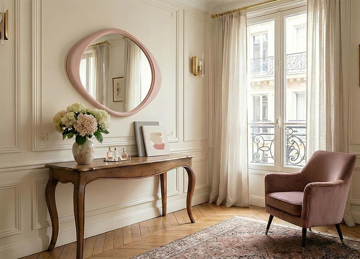 Un miroir qui adoucit l’espace avec caractère