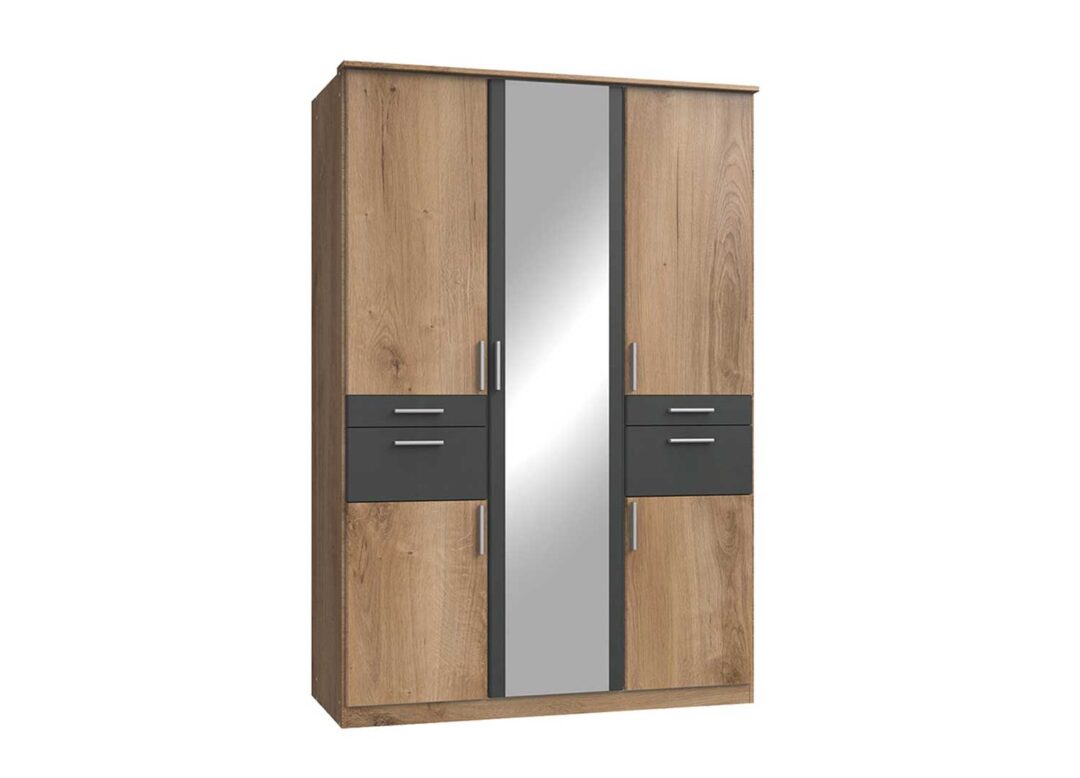 Armoire moderne pas cher décor chêne poutre et gris graphite