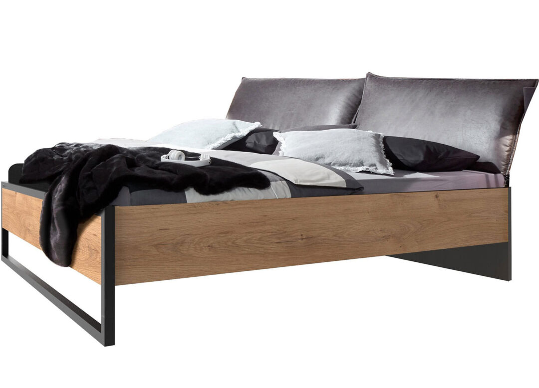 Lit avec chevets suspendus en bois