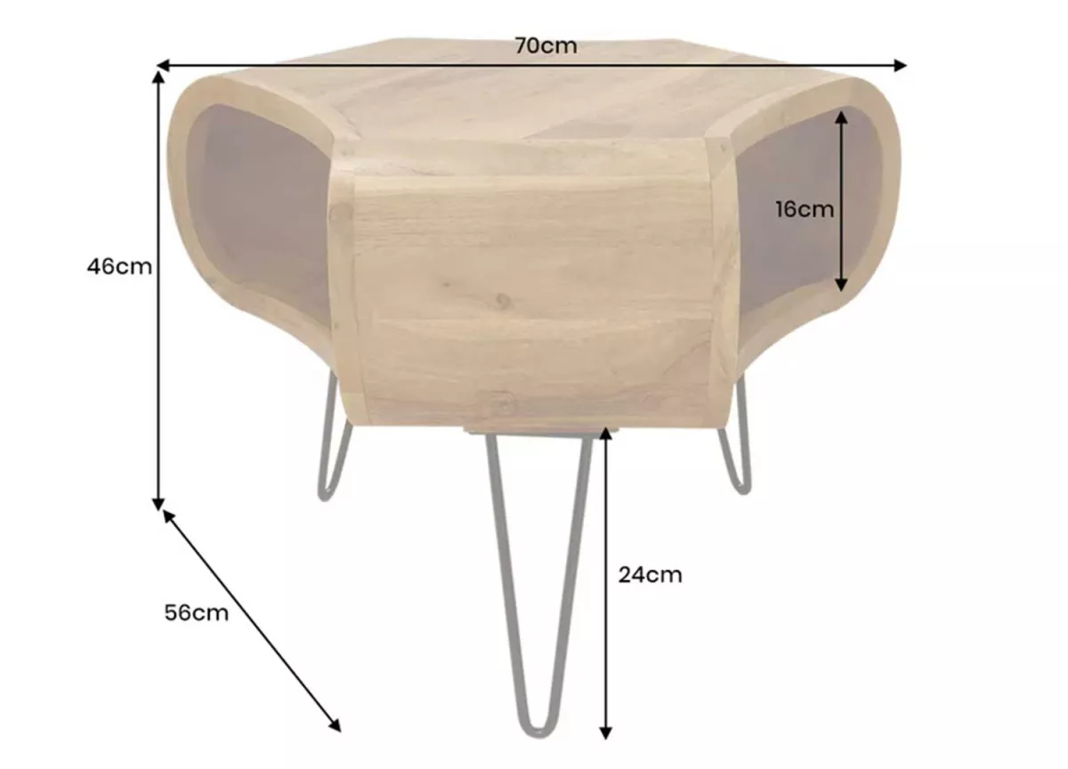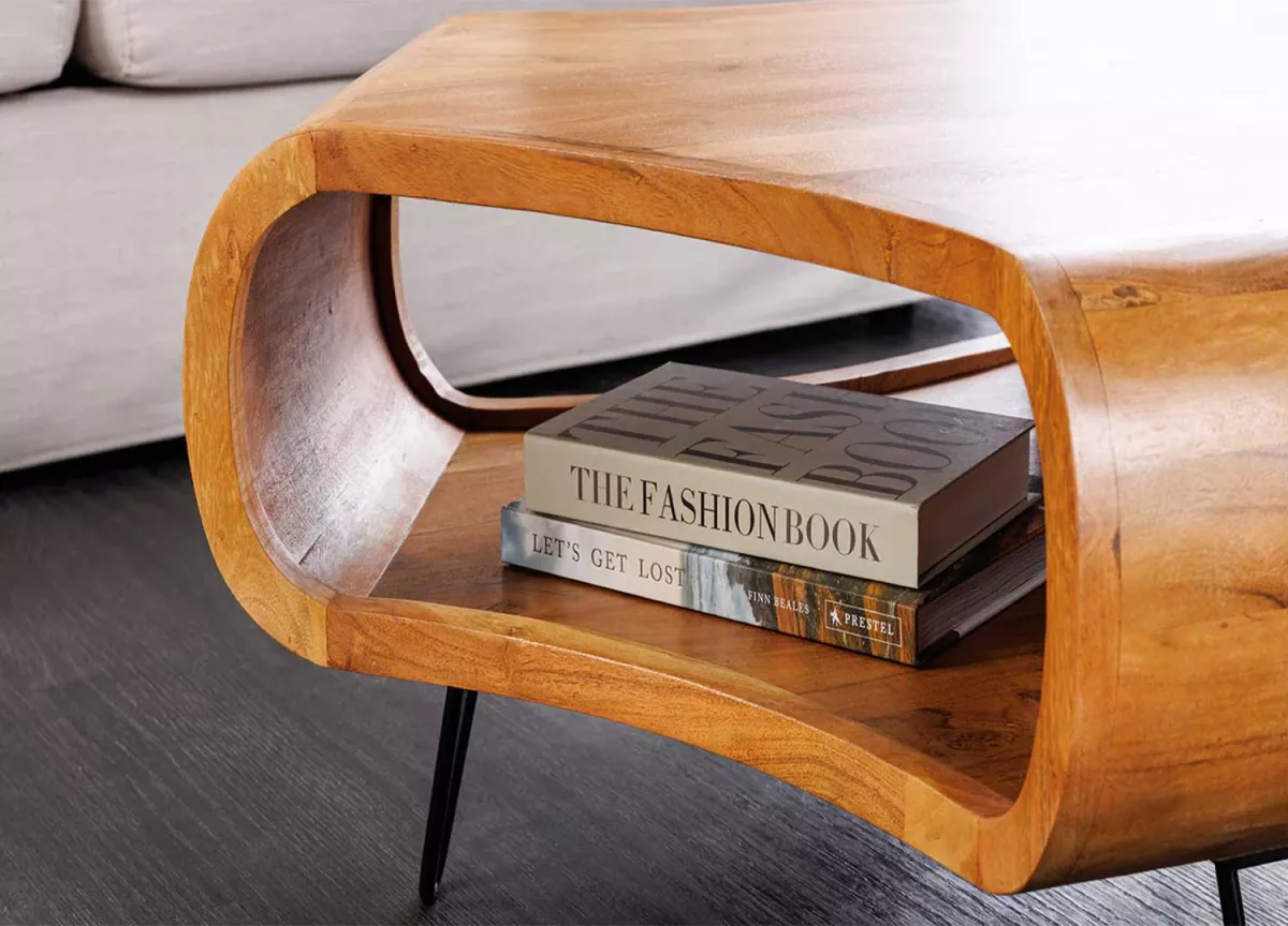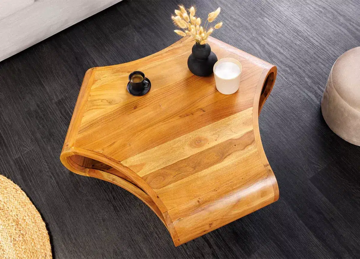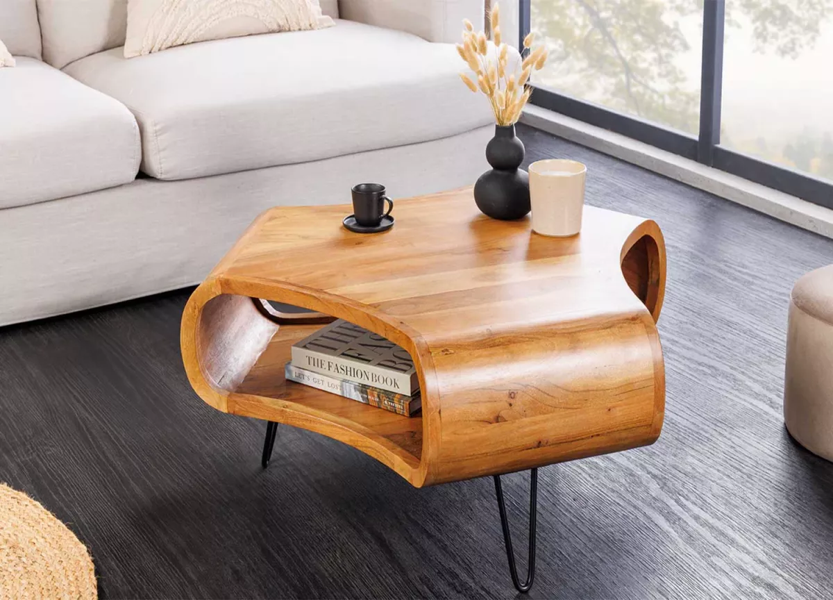 Cette petite table basse en bois d'Acacia aux formes arrondies va radicalement changer l'aspect de votre salon. Grâce à l'originalité de ses formes, elle permet une élégance hors du commun. Le piétement en épingle permet de compléter la simplicité de la table basse de 70 cm tandis que le bois d'acacia imposant et chaud vient donner la touche esthétique finale à la table de salon. Vous pouvez aussi découvrir cette table en table basse, plus imposante et moins haute !